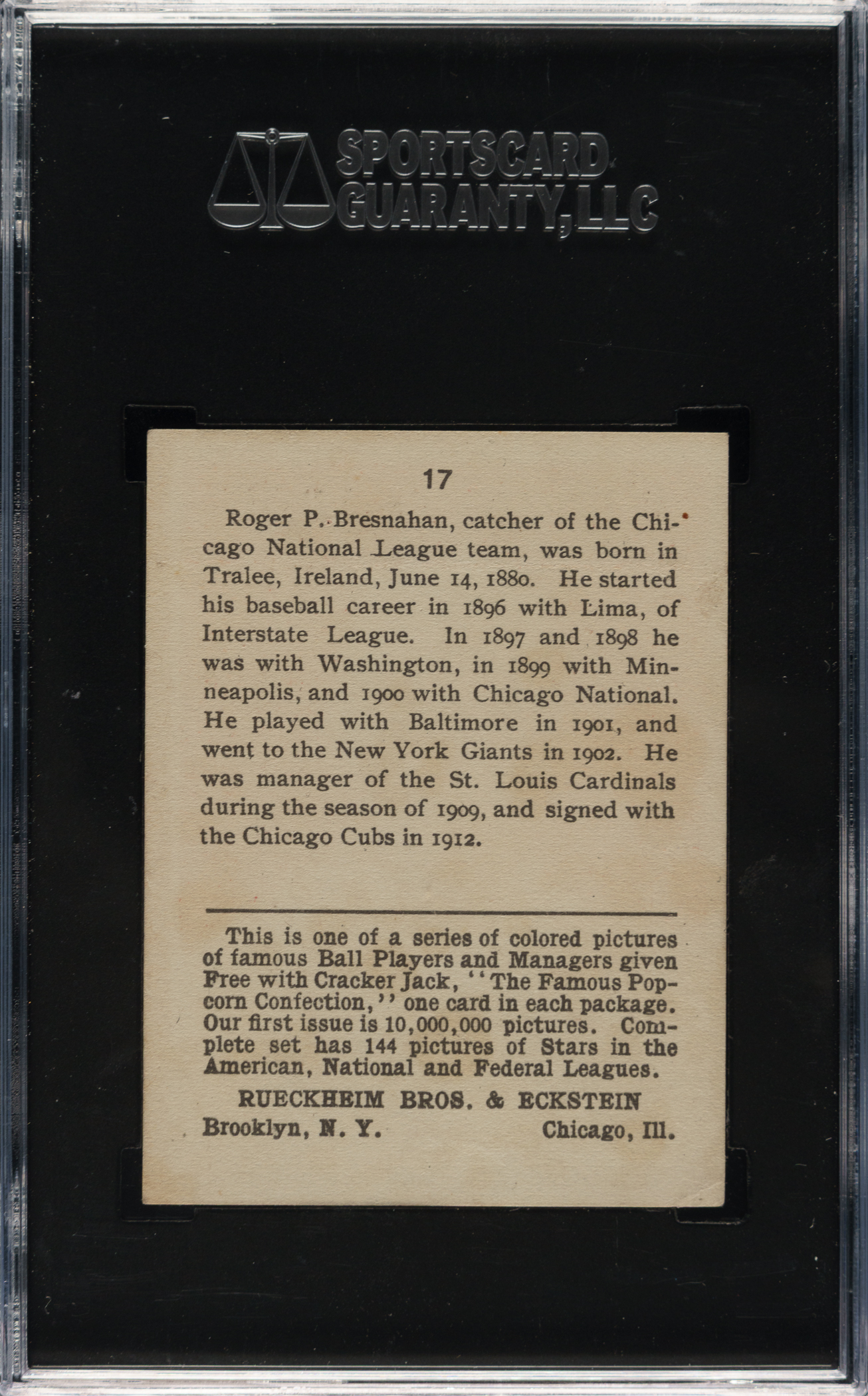 Graded GOOD+ 2.5 by SGC. Chicago Cubs Hall of Famer Roger Bresnahan.