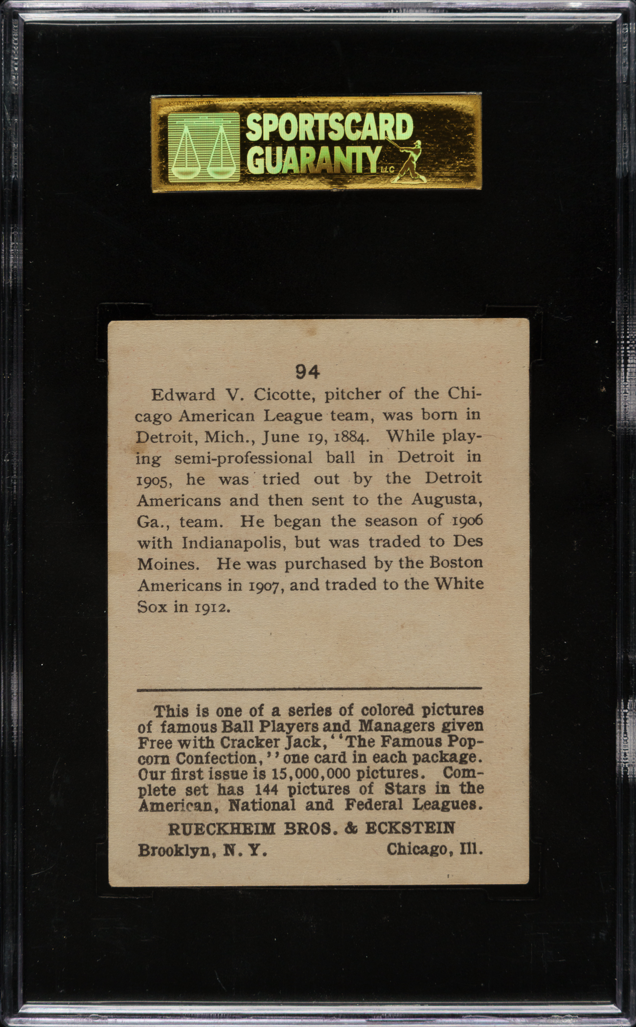 Graded VG/EX 50 by SGC. Pitcher Eddie Cicotte of the Chicago White Sox.