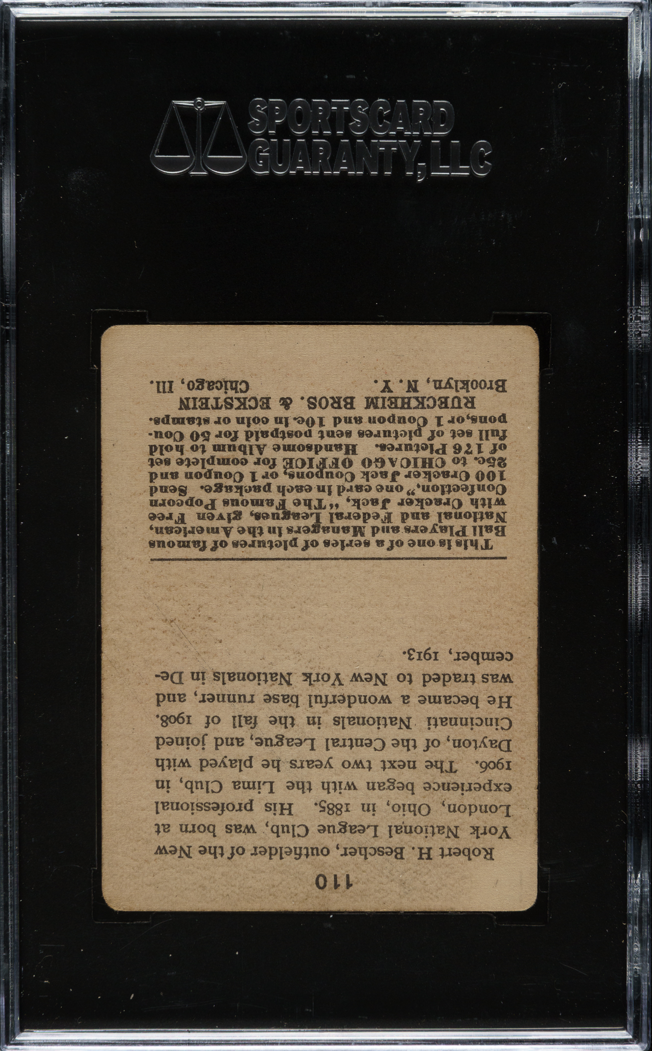Lot # 1878: 1915 E145 Cracker Jack #110 Bob Bescher SGC VG 40