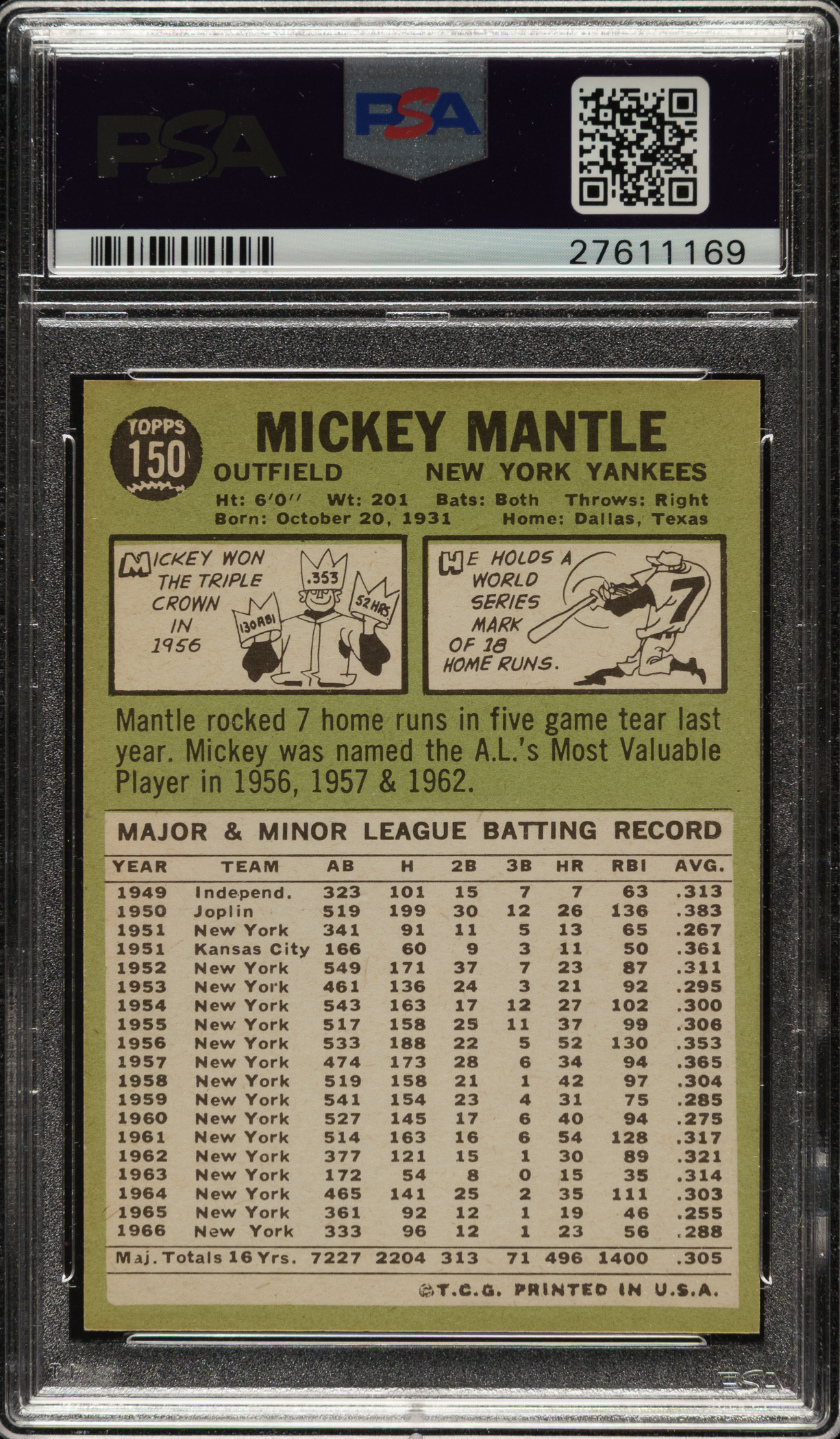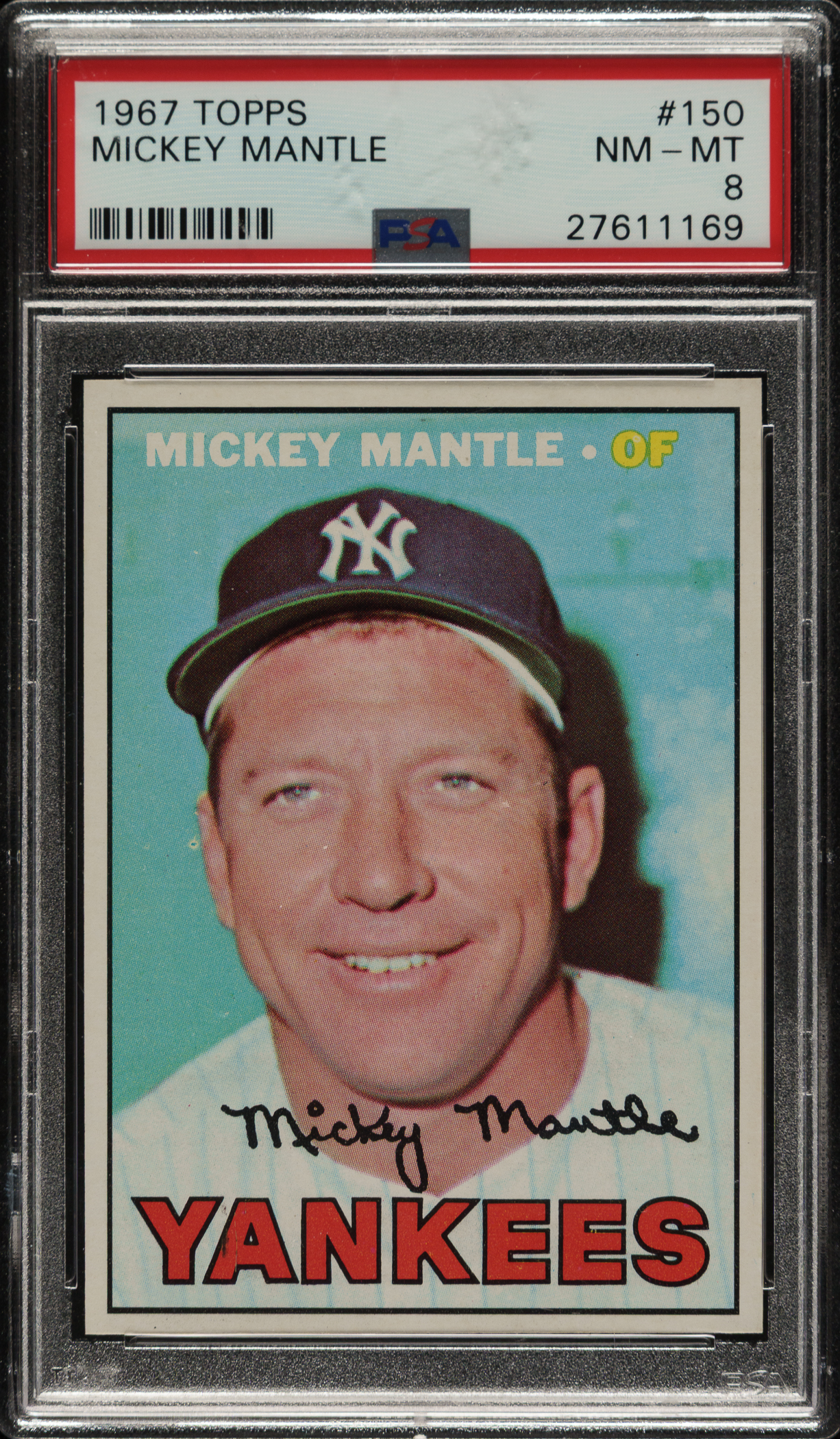 Graded NM-MT 8 by PSA. High-grade example of New York Yankees Hall of Famer Mickey Mantle from the 1967 Topps set. Bright, crisp, and clean with brilliant colors, a sharp image, and four strong corners. Clean reverse.