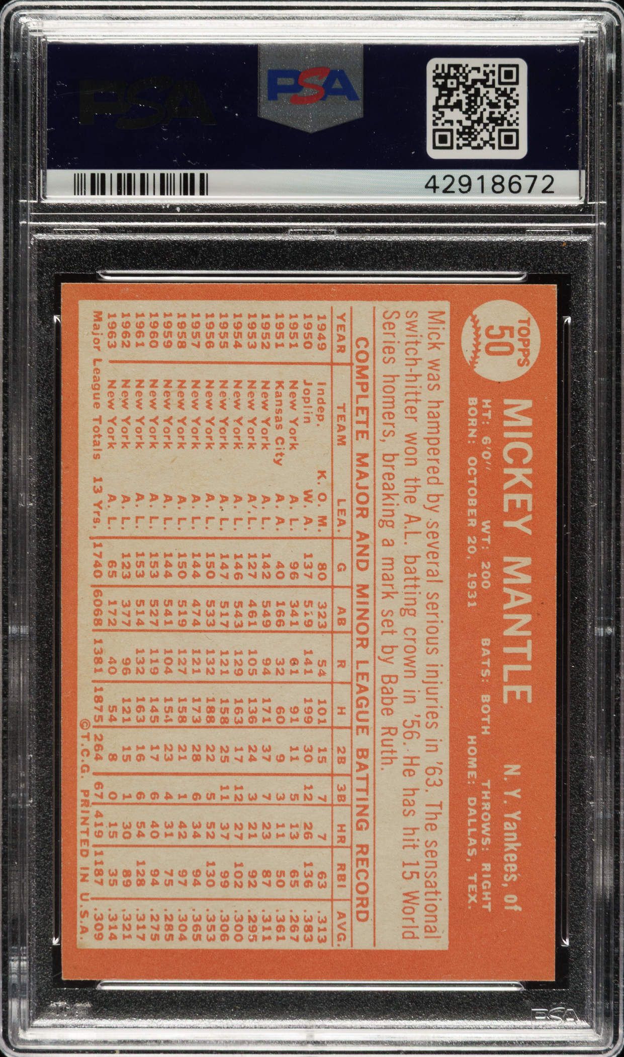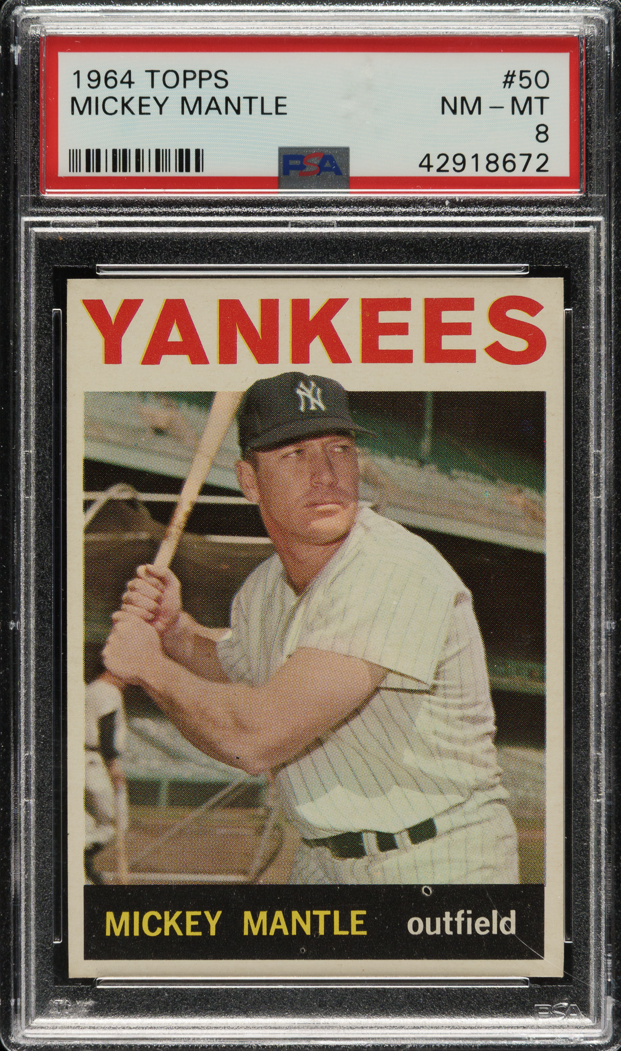 Lot # 1588: 1964 Topps #50 Mickey Mantle PSA NM-MT 8