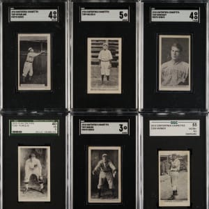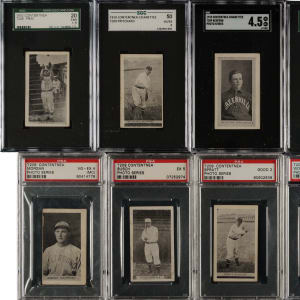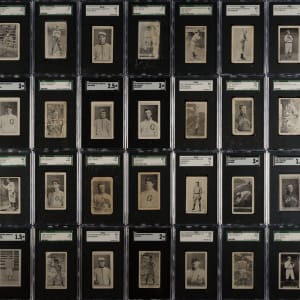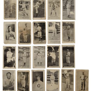 The notable size, scope, and condition of the offered collection are equally as impressive. The T209 Contentnea "Photo Series" features players in a variety of poses, ranging from detailed ballpark scenes to formal studio portraits, and the 117 cards offered here contain a nice mixture of these various poses. As noted earlier, there are a number of extremely difficult individual cards that make completing this set virtually impossible. However, certain teams are naturally more difficult to find and therefore command a premium from collectors familiar with the intricacies of this set. This collection contains 36 cards from the top six most difficult teams, including (in order of difficulty) Portsmouth (5), Wilson (5), Goldsboro (9), Anderson (5), Danville (5), and Rocky Mount (7). The condition of these cards is also far superior to what is commonly found in T209 Contentnea cards, which tend to grade Poor to Fair or only qualify for "Authentic." A large percentage of the SGC-graded population grades Fair or lower, making the 61 cards graded Good or higher truly outstanding condition specimens for this tough set. This is an extremely rare offering of 117 cards from the T209 Contentnea "Photo Series," one of the rarest and most fascinating of all tobacco-card issues, which would provide an incredible foundation for the assembly of a larger collection or complete set or supplement even the most advanced prewar-card collection. Total: 117 cards. The size/weight of this item requires that there will be an additional shipping charge for this lot.