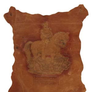 Rare L4 “Generals” Leather Premium of W. F. Cody (“Buffalo Bill”). Collectors are familiar with the L1 Baseball Players, which are among the most valuable of all baseball tobacco premiums. The five Generals are just as rare. The leathers measure 9.5 x 11.75 inches at their widest and tallest point. Each L1 is numbered. Buffalo Bill is #205. The offered leather is technically in modest condition due to moderate creasing and tack holes. Very appealing example.