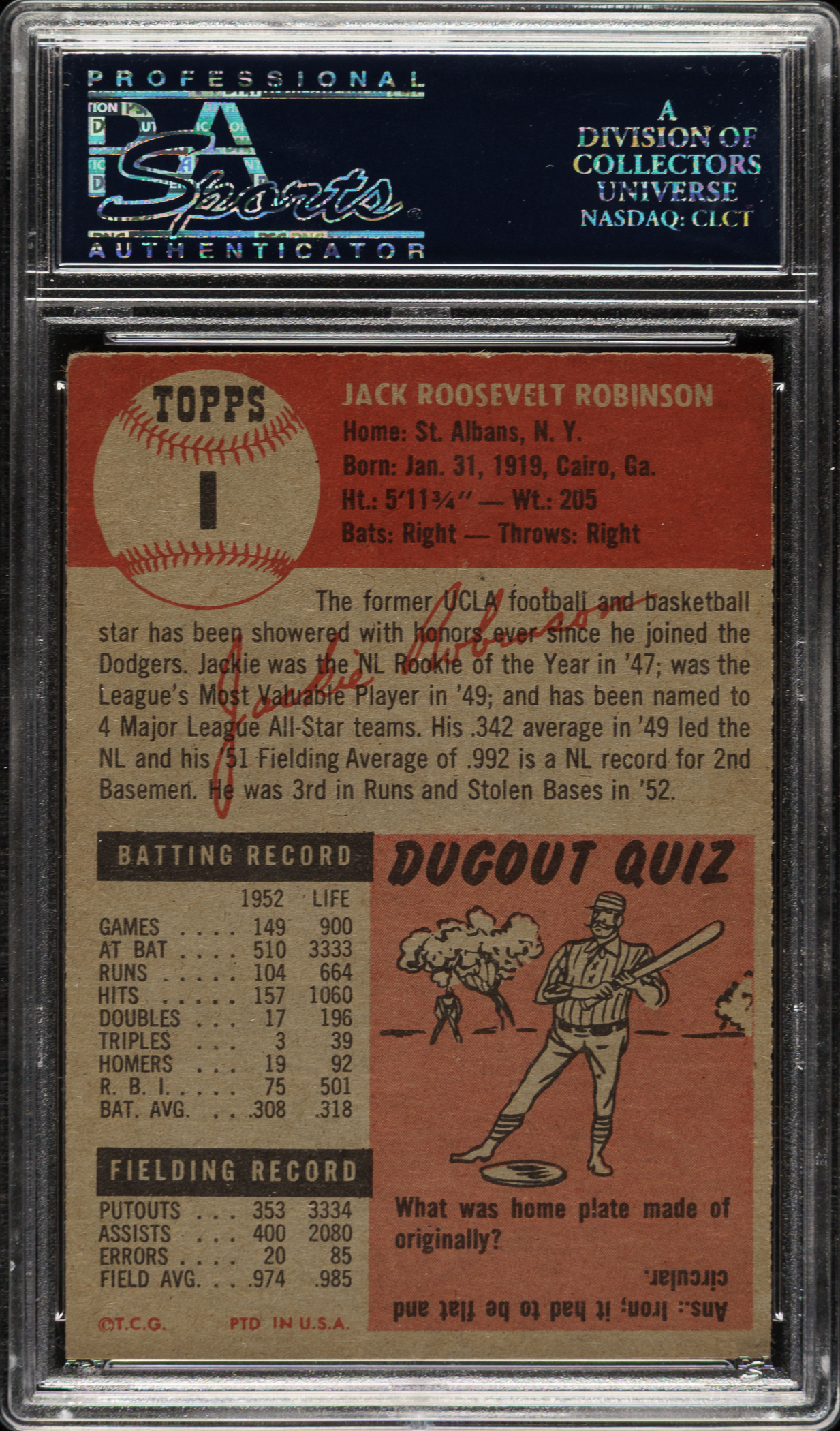 Graded VG-EX 4 by PSA. Brooklyn Dodgers Hall of Famer Jackie Robinson.