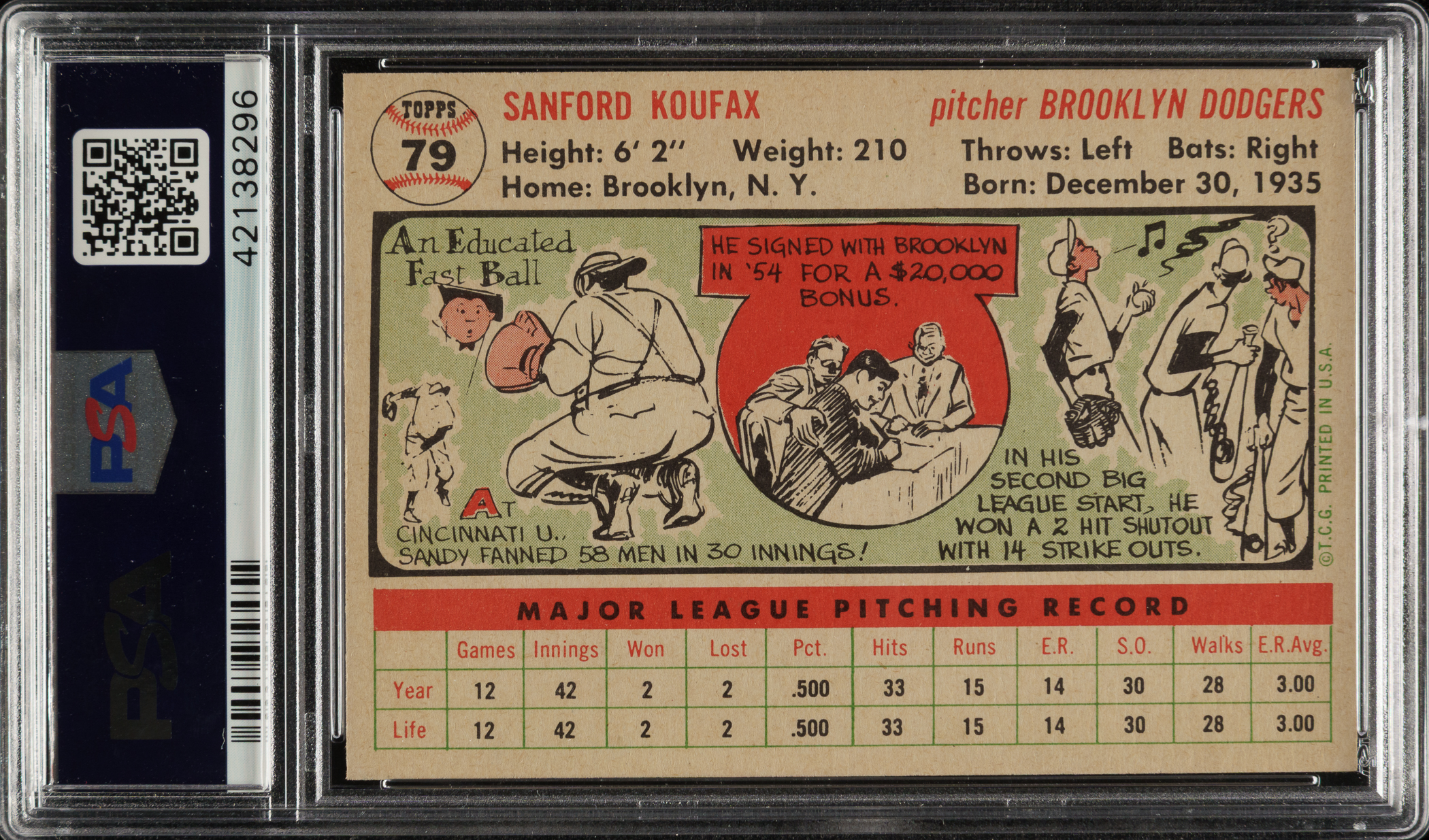 Graded NM-MT 8 by PSA. Brooklyn Dodgers Hall of Famer Sandy Koufax.