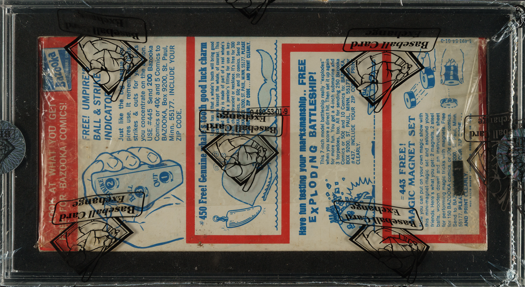 Presented is an extremely rare 1972 Topps Baseball unopened triple wax-pack grocery tray, one of the most elusive treasures of all 1970s Topps unopened-pack collecting. This is the first example we have ever offered! The 1972 Topps set is full of many stars and Hall of Famers, including Carlton Fisk (rookie), Nolan Ryan, Pete Rose, Hank Aaron, and Willie Mays among others. While there are no guarantees with reference to grading unopened material, it is possible that ultra-high-grade examples could be inside. This tray comes shrink-wrapped by Baseball Card Exchange (Steve Hart), the foremost expert on unopened material. The tray displays extremely well overall, with tight seals and two small tears (upper and lower-left corners; only visible from the reverse). This tray would make an excellent addition to any pack collection or companion to any complete 1972 Topps baseball set.