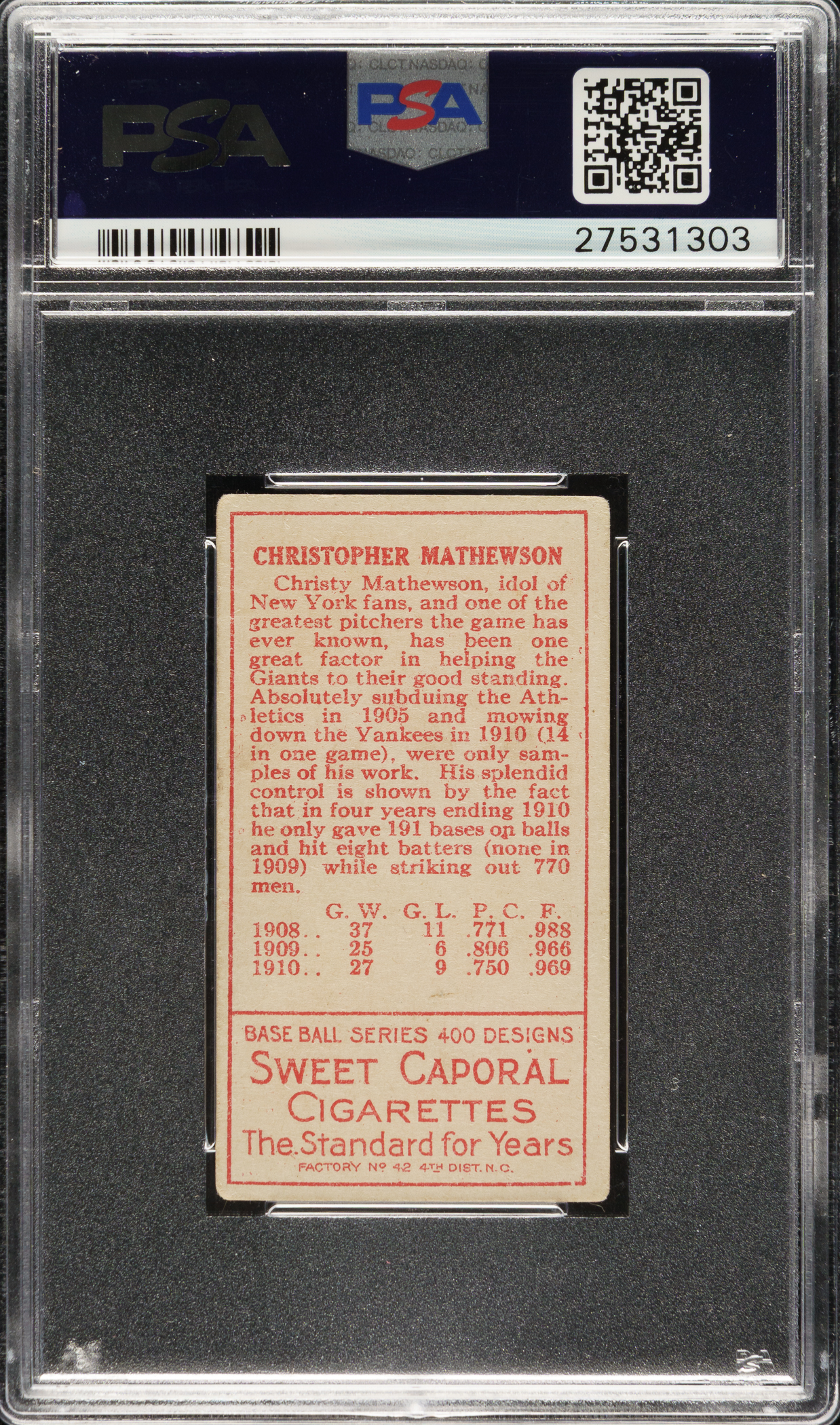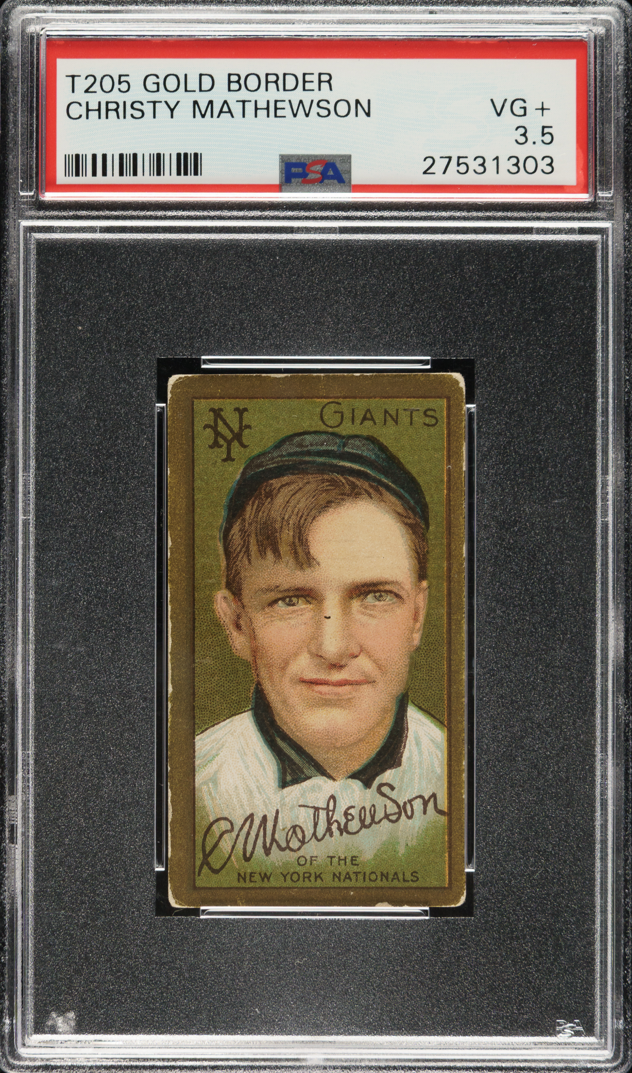 Graded VG+ 3.5 by PSA. New York Giants Hall of Famer Christy Mathewson.