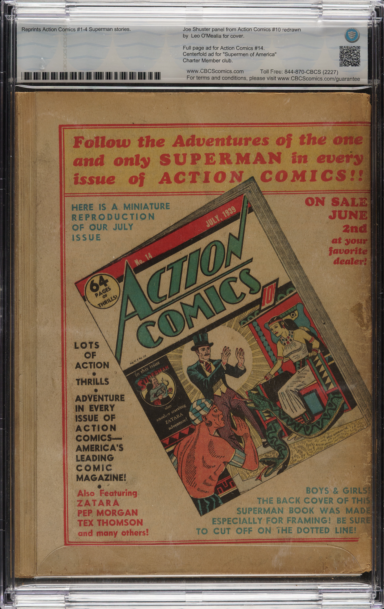 A few American icons have a special meaning to popular culture, with a significance that is timeless, transcending their genre and era, and cutting across all generations. Babe Ruth was a great baseball player but has a far greater significance than just as a ballplayer to American culture. Muhammad Ali was a great boxer but his impact cannot be measured only by his exploits in the ring. Superman was a great comic-book character but his impact on American culture - in comic books, television, and movies - makes him an iconic figure in the American cultural landscape. Released in 1939 by D. C. Comics and created by Jerry Siegel and Joe Shuster, "Superman #1" is one of the most sought-after and important issues in all of comic book-collecting. In fact, it was the first comic book to be fully dedicated to a single superhero. Although the Superman character was introduced a year earlier as part of "Action Comics #1," this issue details his complete story, the background of his parents on Krypton, and how he arrived on Earth and was raised by the Kents. Superman #1 (D. C. Comics, 07/1939). Graded 0.5 by CBCS with cream to off-white pages. The offered example displays a number of obvious condition flaws, including the front cover trimmed, the back cover missing, and the staples removed. Although modest in grade, this key Golden Age book would make a welcome addition to any Superman, Golden Age, or key issue comic book collection.