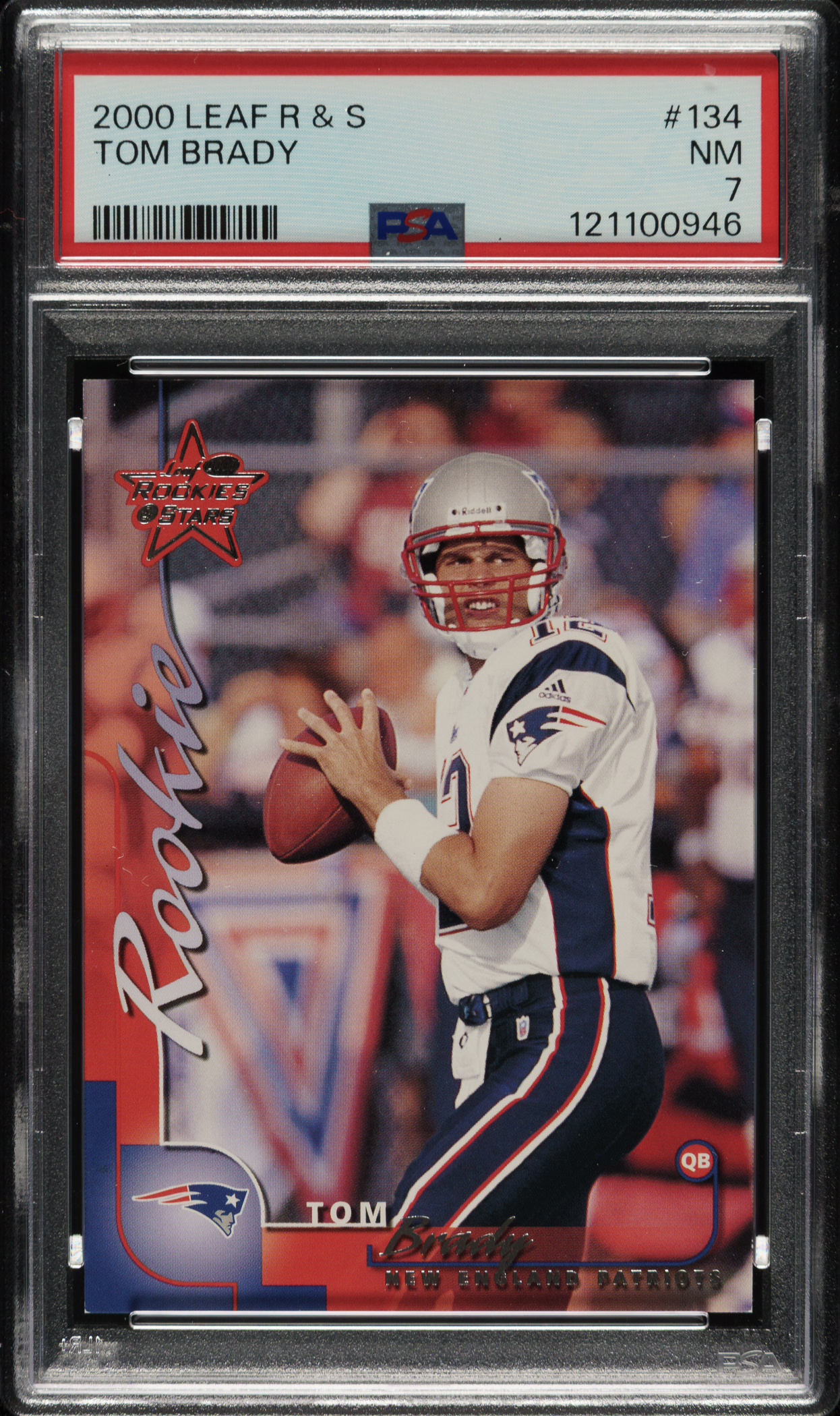 Graded NM 7 by PSA. New England Patriots quarterback Tom Brady.