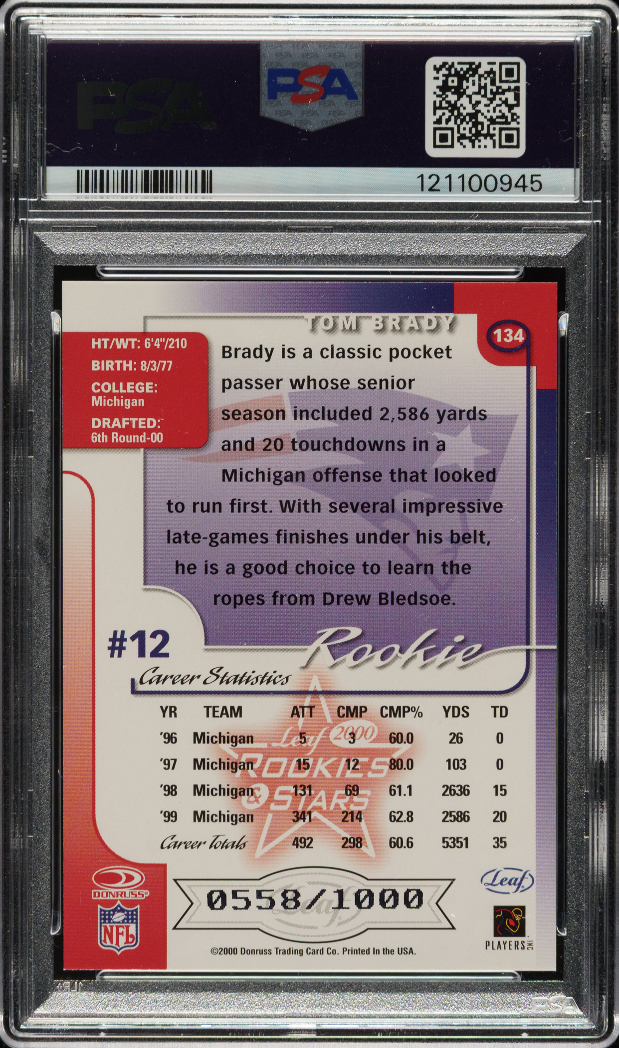 Graded NM 7 by PSA. New England Patriots quarterback Tom Brady.