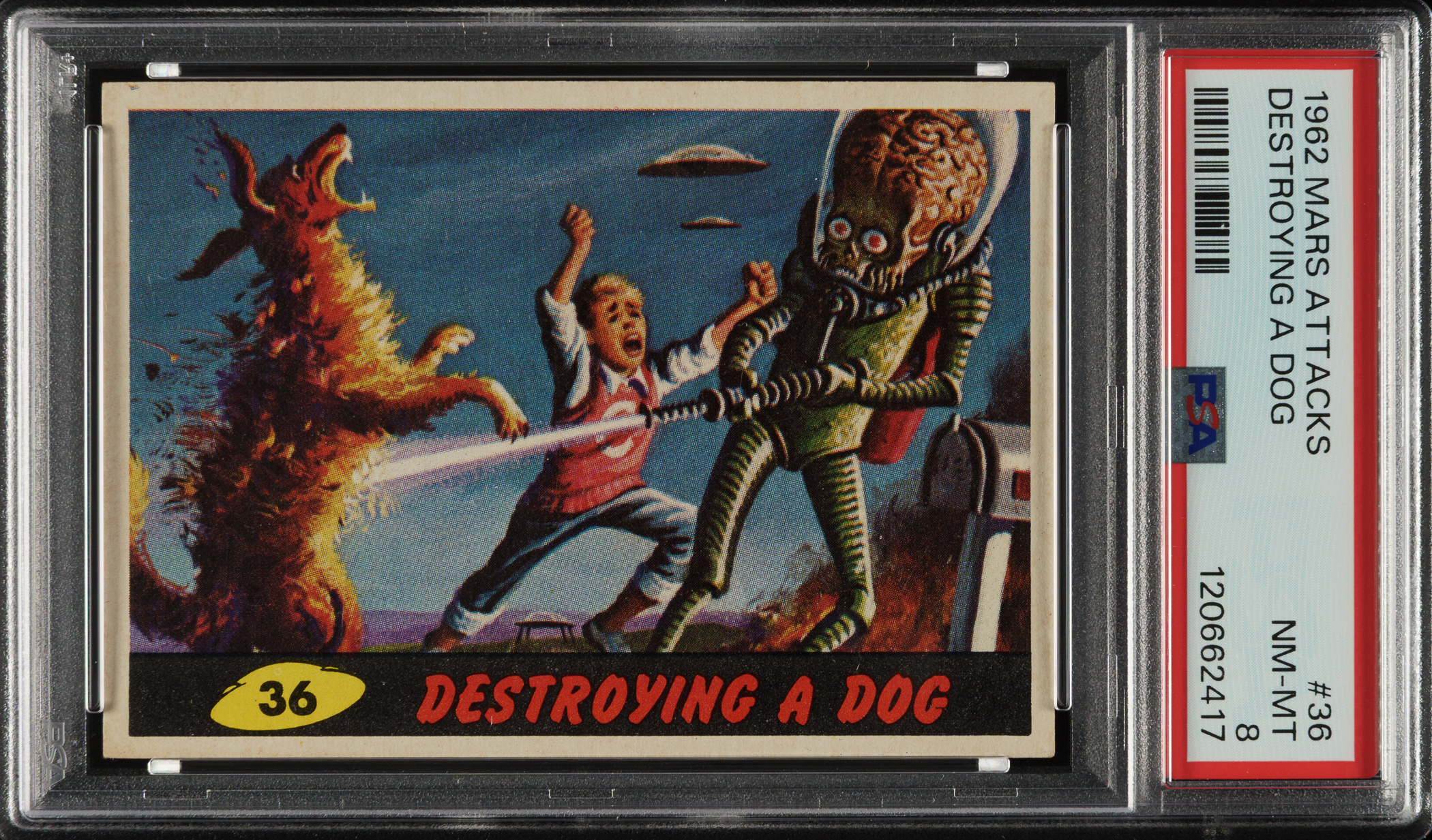 Lot # 2940: 1962 Topps "Mars Attacks" #36 "Destroying A Dog" PSA NM-MT 8