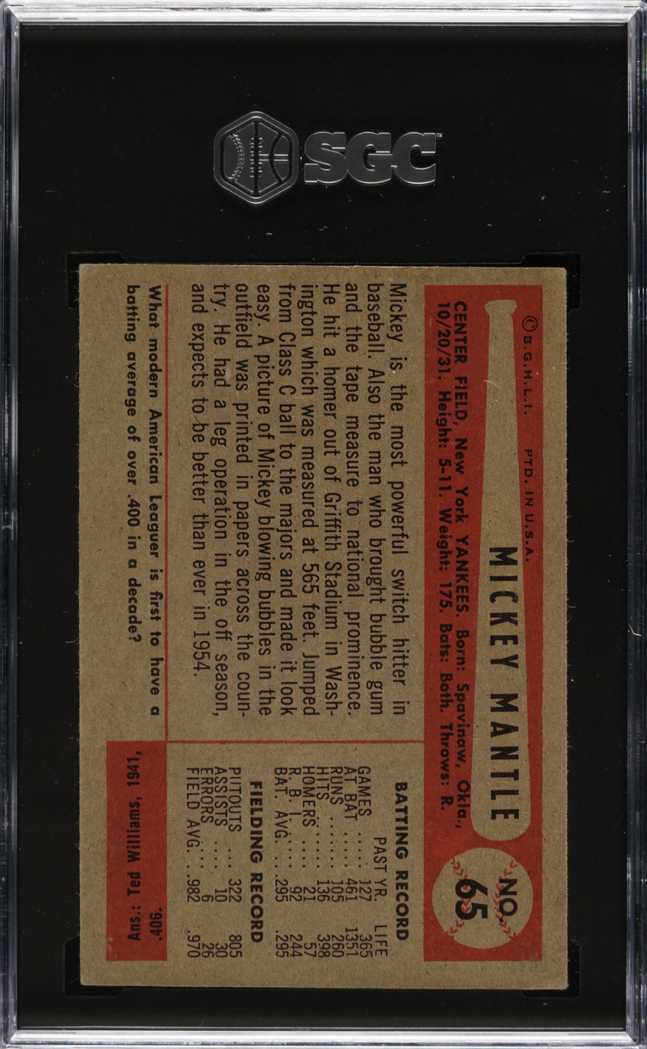 Graded VG/EX 4 by SGC. New York Yankees Hall of Famer Mickey Mantle.