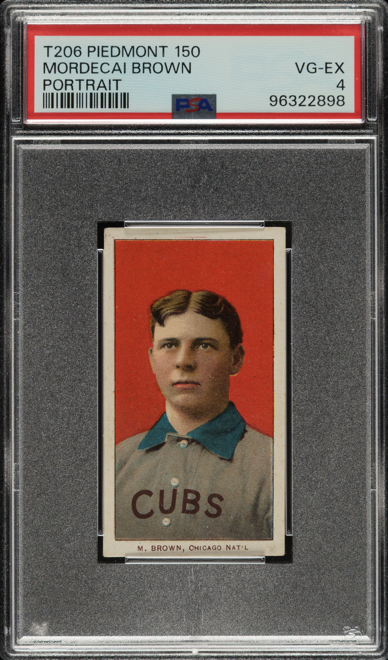 Graded VG-EX 4 by PSA. Chicago Cubs Hall of Famer Mordecai Brown.