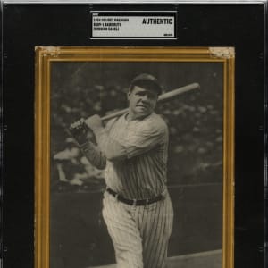 Encapsulated as "Authentic" by SGC. New York Yankees Hall of Famer Babe Ruth. The easel attachment on this example is missing.