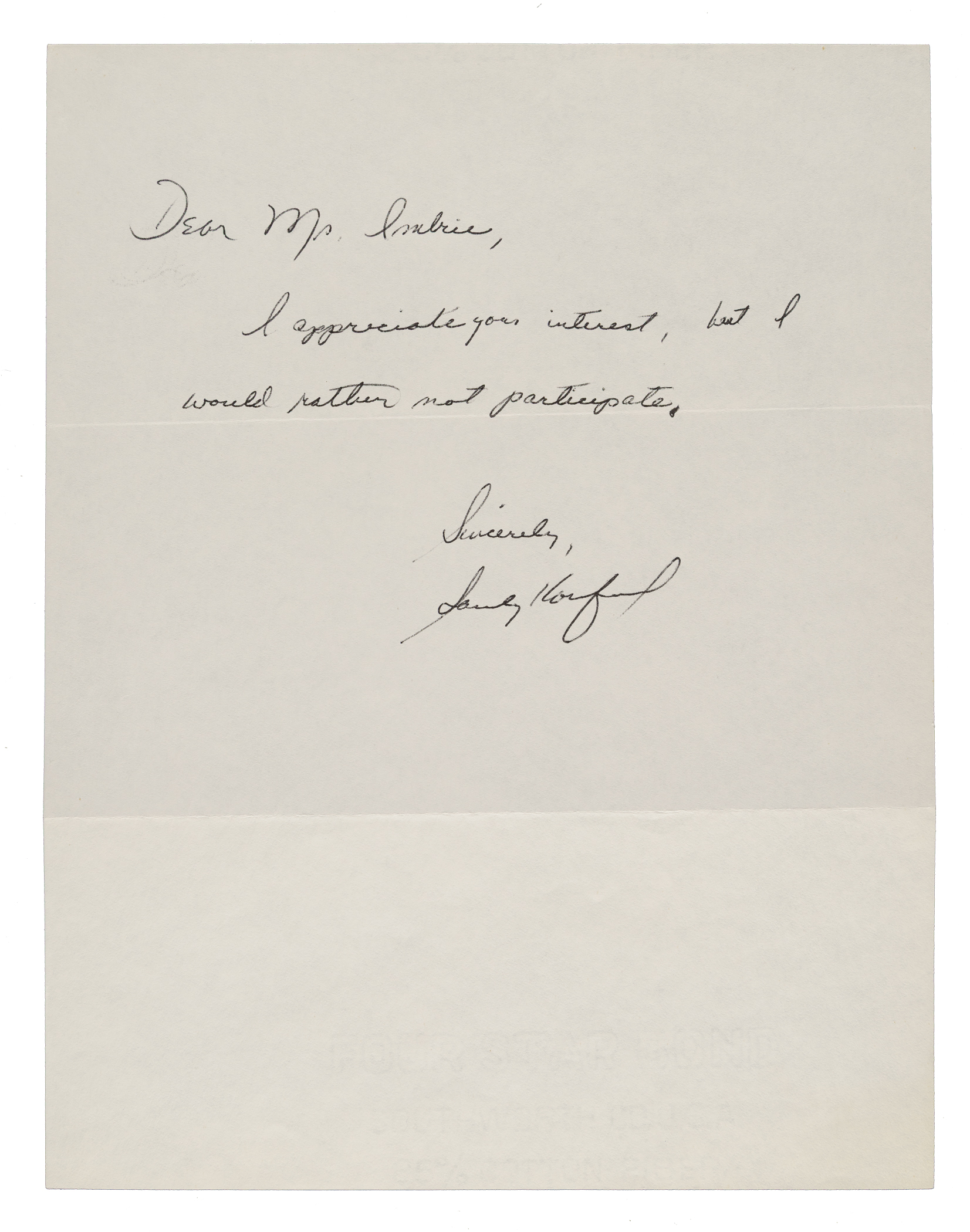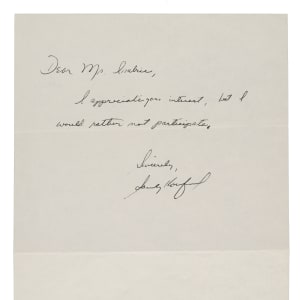 Handwritten letter signed by Los Angeles Dodgers Hall of Famer Sandy Koufax on a white sheet of paper. Dimensions: 8.5 x 11 inches. Auction LOA from James Spence/JSA.