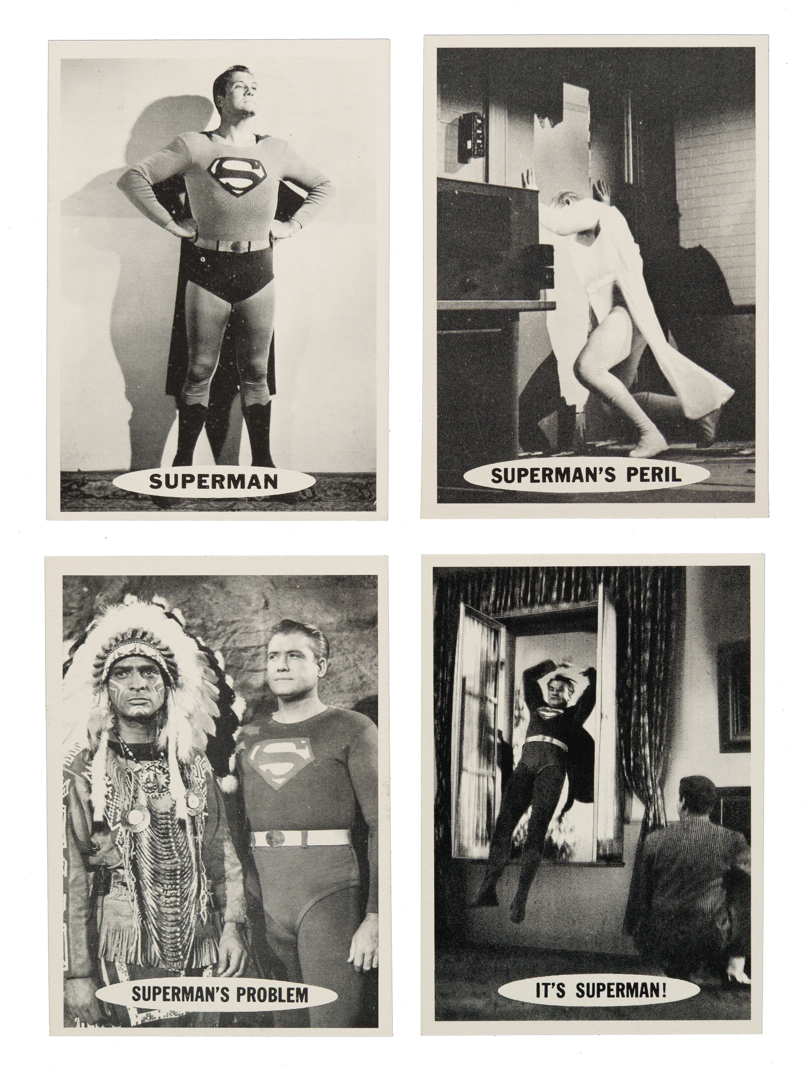 Presented is a complete 66-card set of 1966 Topps "Superman" trading cards. Condition is 33% Nr/Mt or better (mostly Nr/Mt) and 67% Ex to Ex-Mt (including a couple slightly lesser and one that measures small). This is a very attractive mid- to high-grade complete set of one of the most popular of all 1960s nonsport issues. Total: 66 cards.