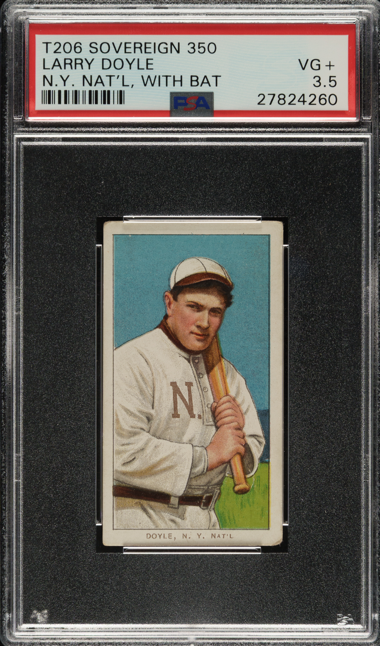 Lot # 516: 1909-1911 T206 White Border Larry Doyle with Bat PSA VG+ 3.5 - Sovereign 350 Back