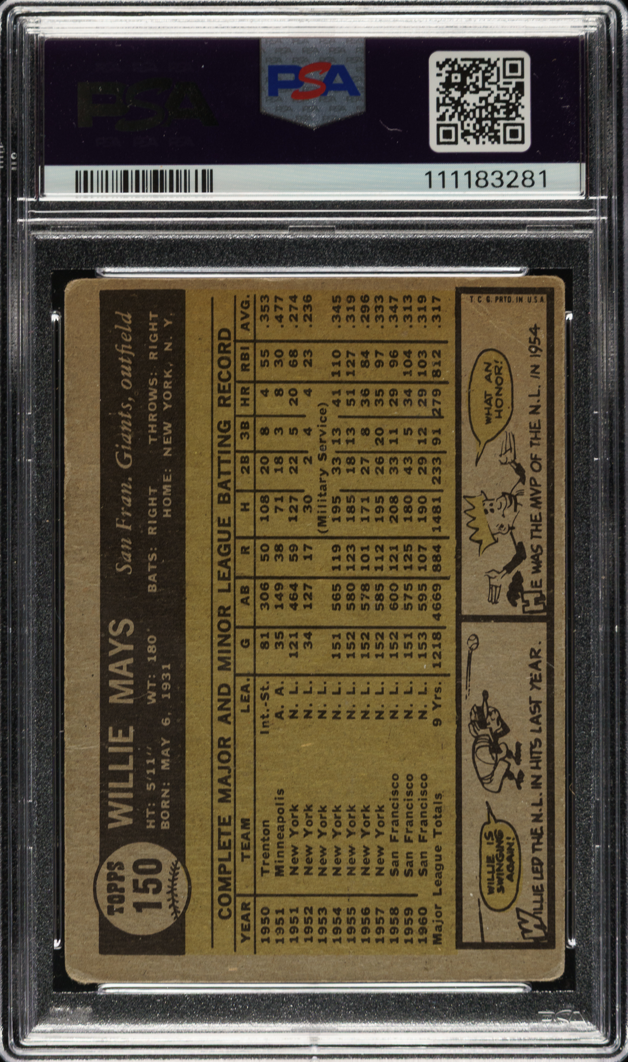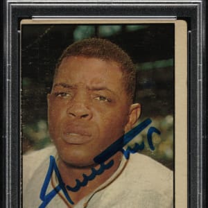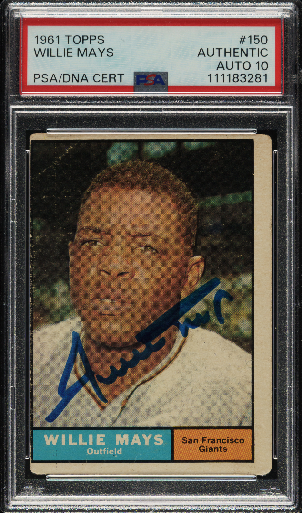 PSA/DNA has encapsulated the card, grading the signature GEM MINT 10. San Francisco Giants Hall of Famer Willie Mays.
