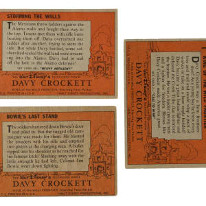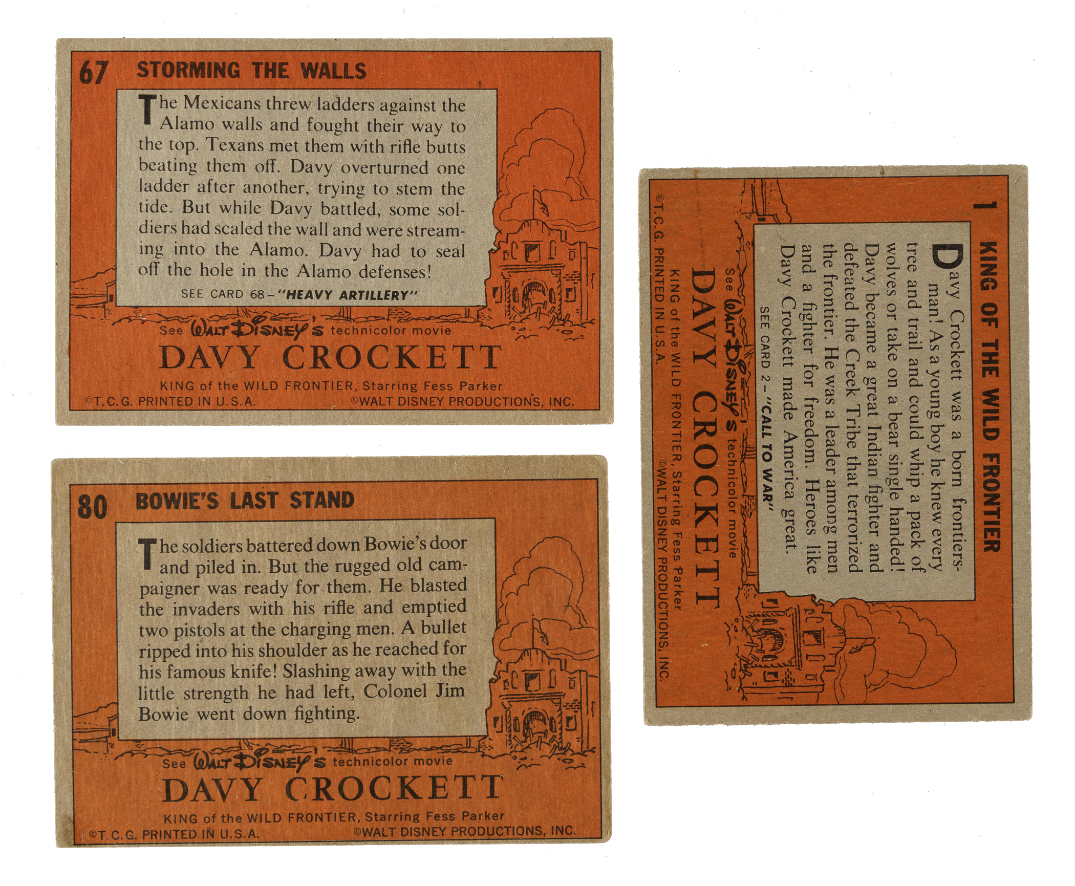Presented is a complete set pair of 1956 Topps "Davy Crockett" orange back trading cards. This collection consists of the following: 1) 1956 Topps "Davy Crockett" Orange-Back Complete Set (80): Condition is 53% Vg-Ex to Ex, 37% Gd to Vg, and 10% Pr to Fr. 2) 1956 Topps "Davy Crockett" Orange-Back Complete Set (80): Condition is 30% Vg-Ex to Ex, 42% Gd to Vg, and 28% Pr to Fr. Total: 2 sets, 160 cards. The size/weight of this item requires that there will be an additional shipping charge for this lot.