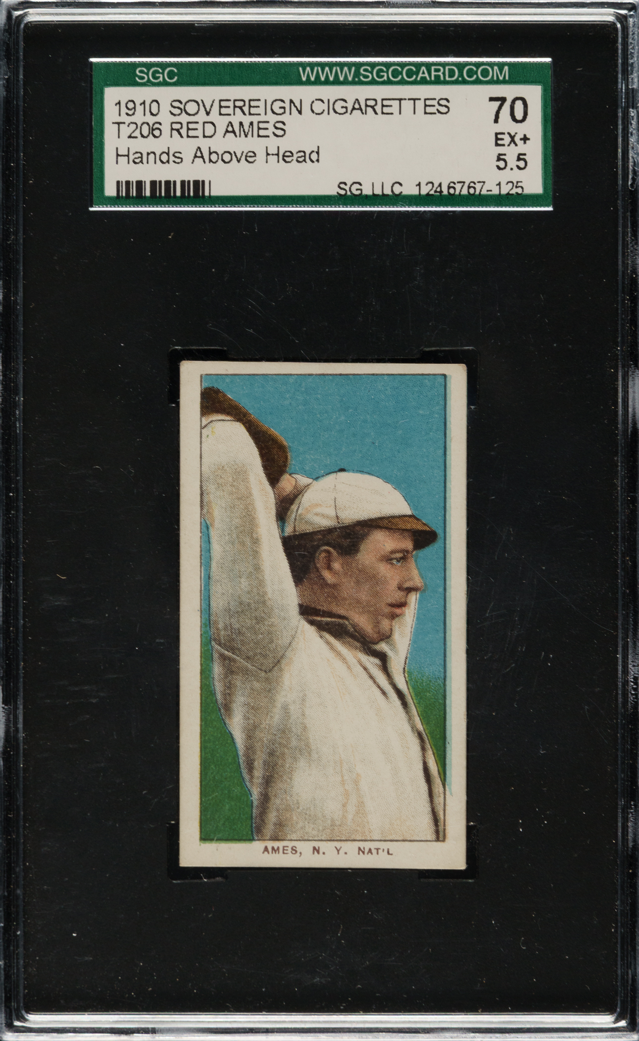 Lot # 193: 1909-1911 T206 White Border Red Ames Hands Above Head SGC EX+ 70 - Sovereign 350 Back