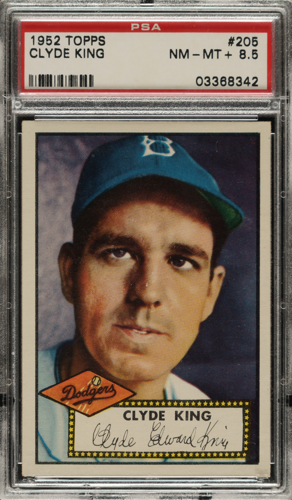 Graded NM-MT+ 8.5 by PSA. Pitcher Clyde King of the Brooklyn Dodgers.
