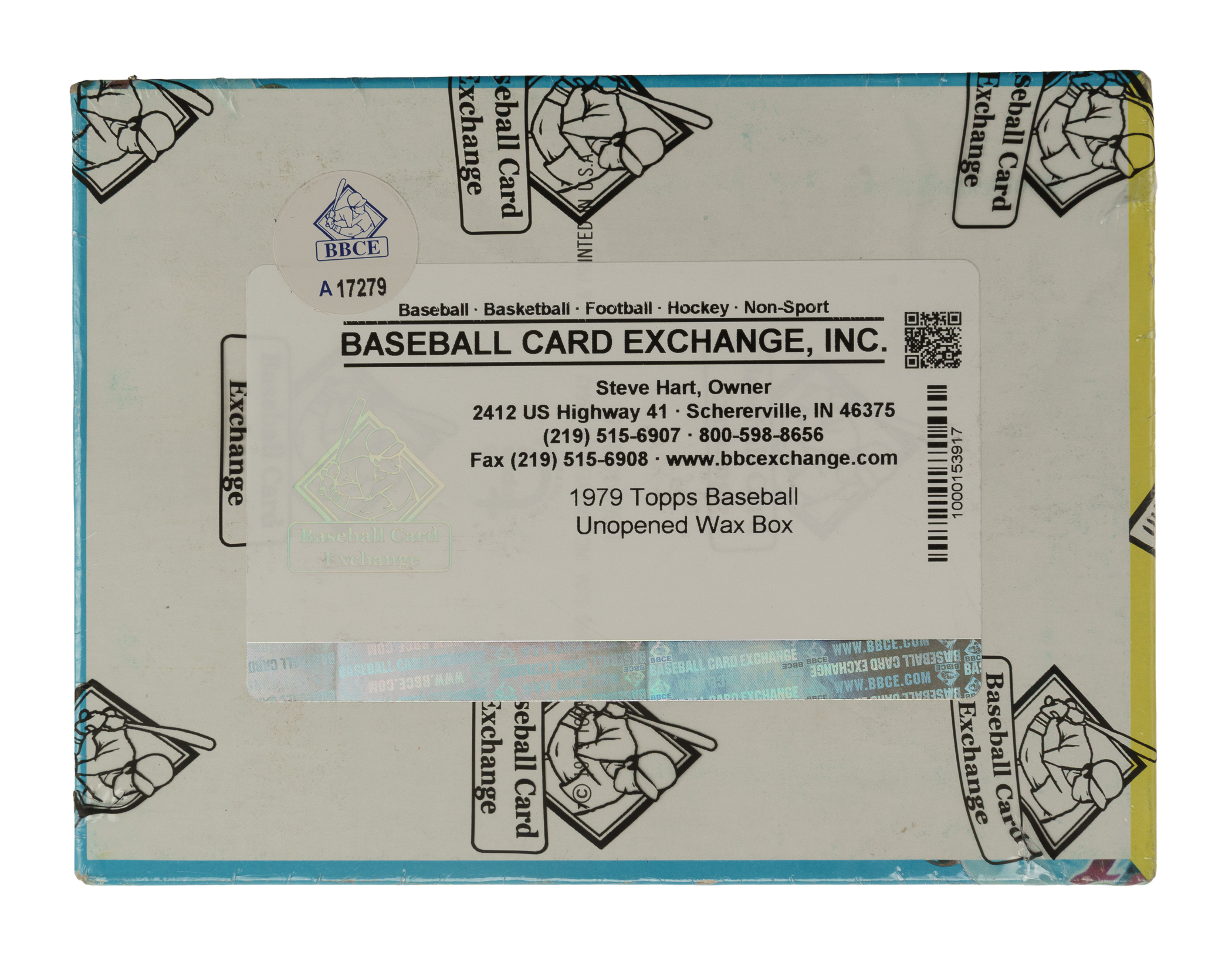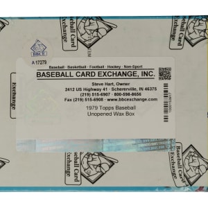 Complete, original unopened wax box of 1979 Topps baseball. This box houses thirty-six packs with each pack containing twelve cards for a total of 432 cards. The 1979 Topps set includes the rookie card of Ozzie Smith, along with Nolan Ryan, Eddie Murray, George Brett, Robin Yount, and many other Hall of Famers. The display box has light-to-moderate shelf wear. This box comes shrink-wrapped by Baseball Card Exchange (owned by Steve Hart, the foremost expert on unopened material). The size/weight of this item requires that there will be an additional shipping charge for this lot.