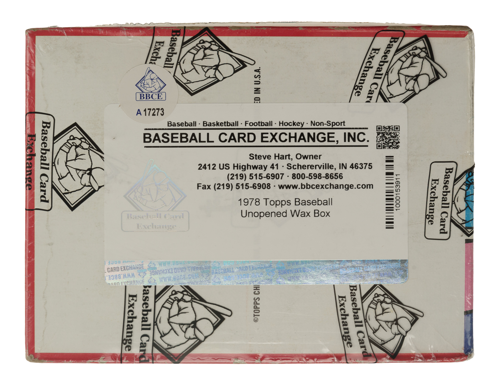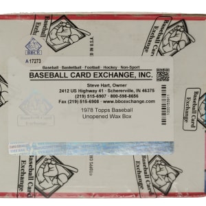 Complete, original unopened wax box of 1978 Topps baseball. The box houses 36 packs with each pack containing 10 cards for a total of 360 cards. The 1978 Topps set includes rookie cards of Eddie Murray and Paul Molitor, as well as cards of many other Hall of Famers, including Nolan Ryan, George Brett, and Robin Yount. This box comes shrink-wrapped by Baseball Card Exchange (owned by Steve Hart, the foremost expert on unopened material). The display box is bright and bold with light shelf wear.