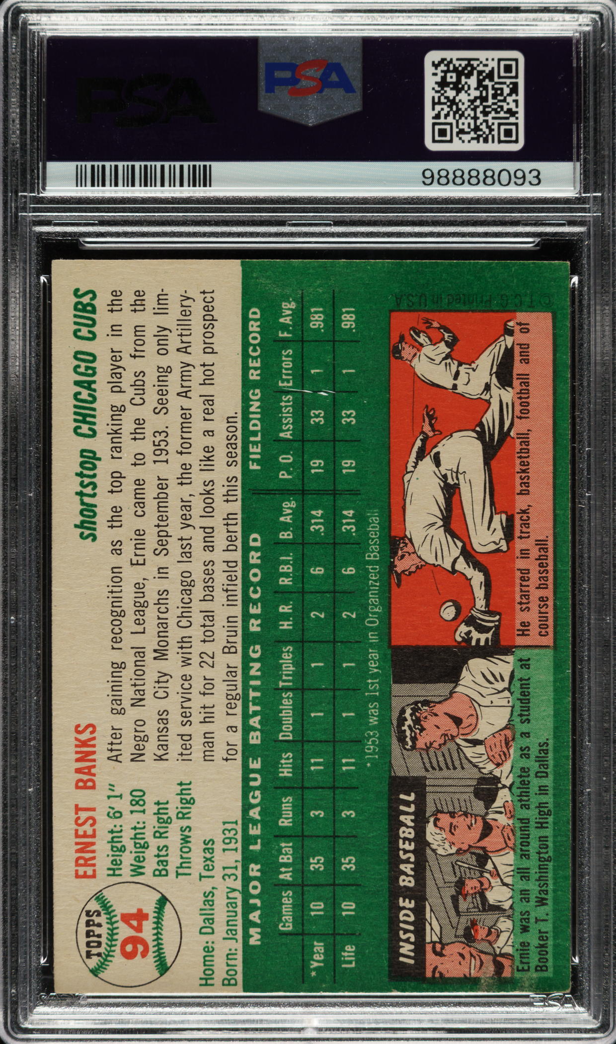 Graded VG-EX 4 by PSA. Chicago Cubs Hall of Famer Ernie Banks.