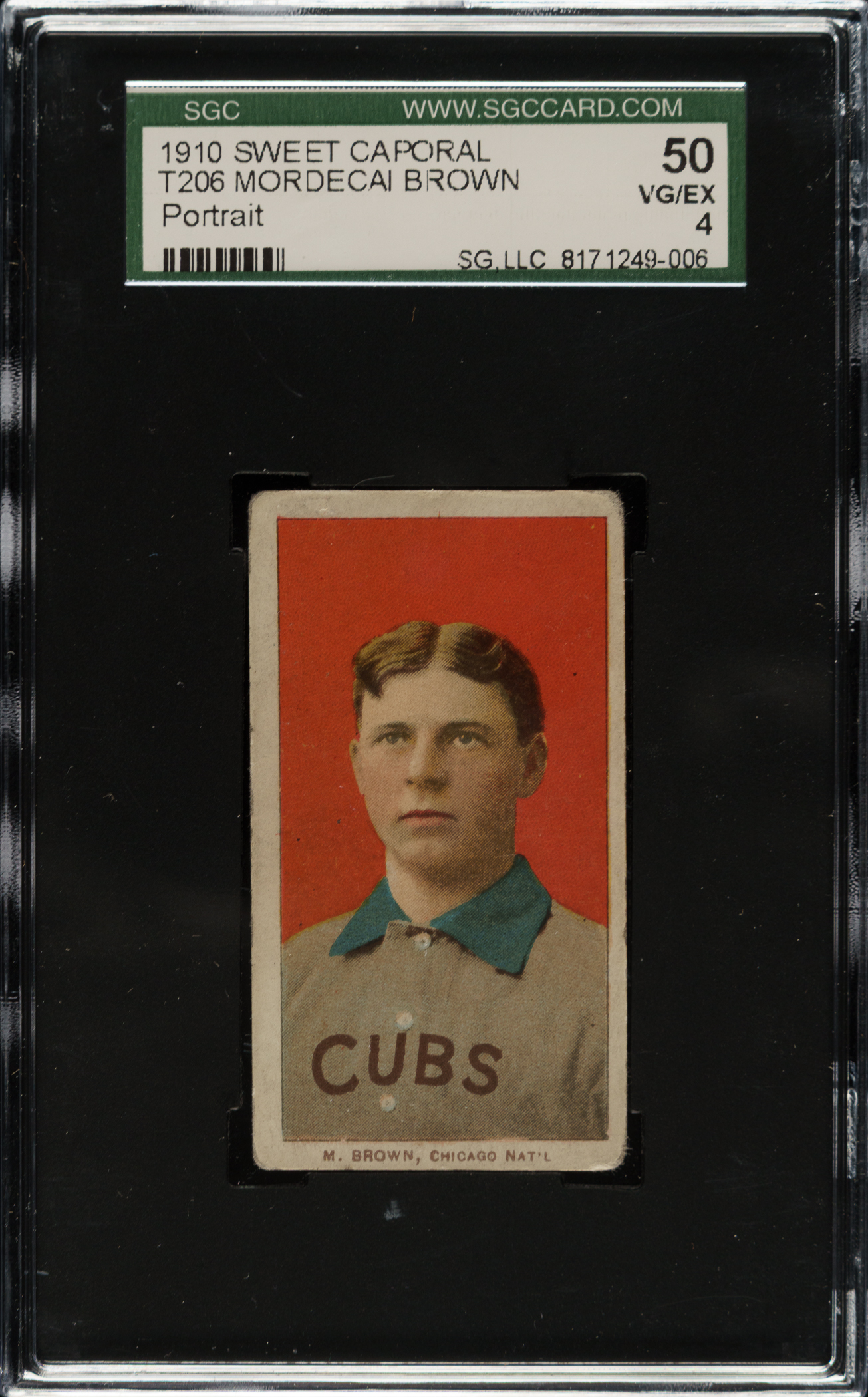 Graded VG/EX 50 by SGC. Chicago Cubs Hall of Famer Mordecai Brown.