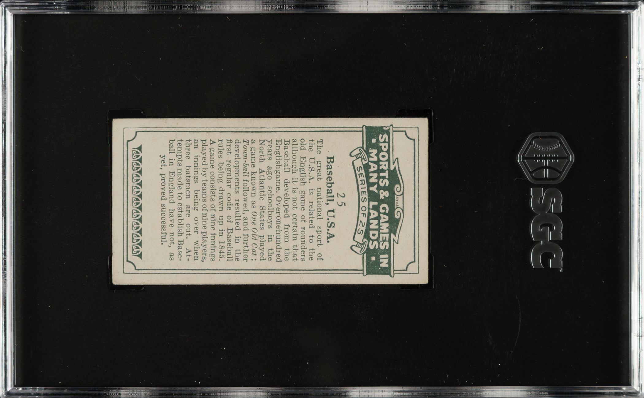 Graded VG/EX+ 4.5 by SGC. New York Yankees Hall of Famer Babe Ruth. While many collectors are familiar with this image from the more commonly encountered Churchman set, the British American Tobacco set is much scarcer. To date, PSA and SGC have combined to grade approximately 75 examples (in all grades) from this set compared to more than 690 from the Churchman set.