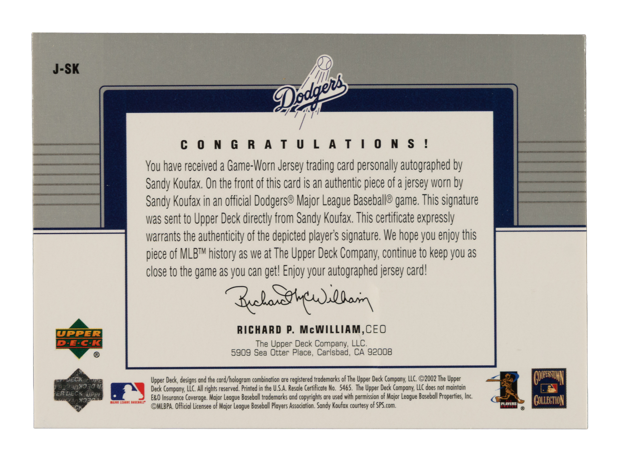 Los Angeles Dodgers Hall of Famer Sandy Koufax. Condition is Ex-Mt.