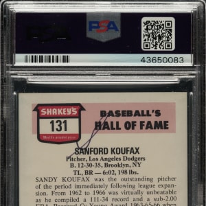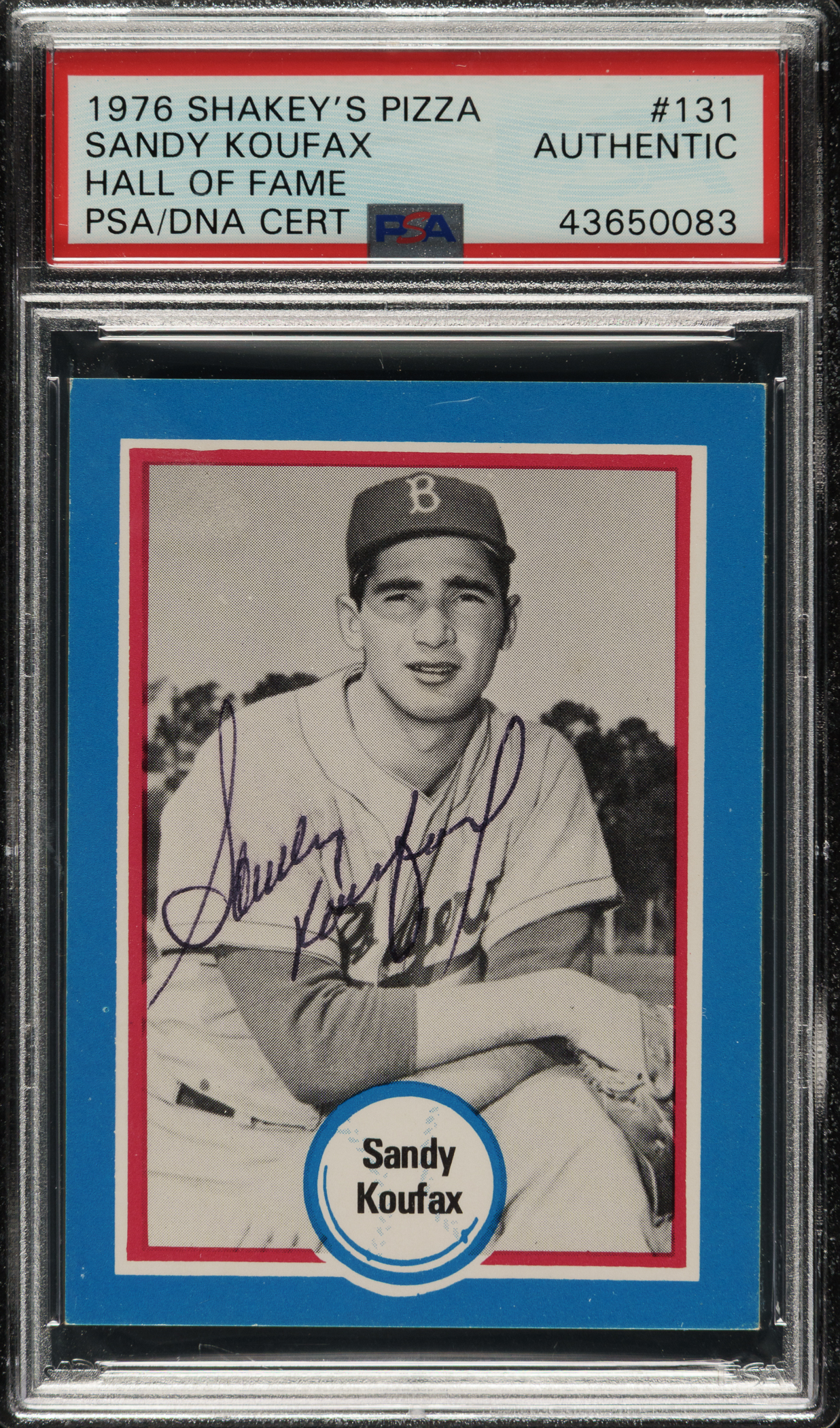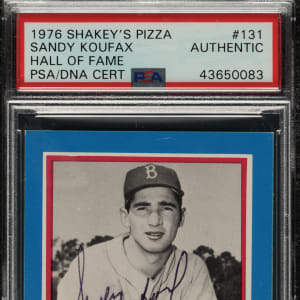 PSA/DNA has encapsulated the card and certified the signature as "Authentic." Los Angeles Dodgers Hall of Famer Sandy Koufax.