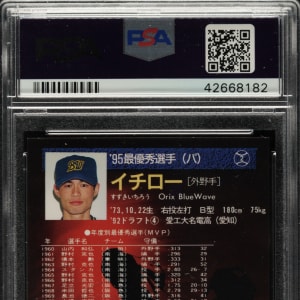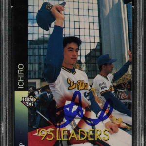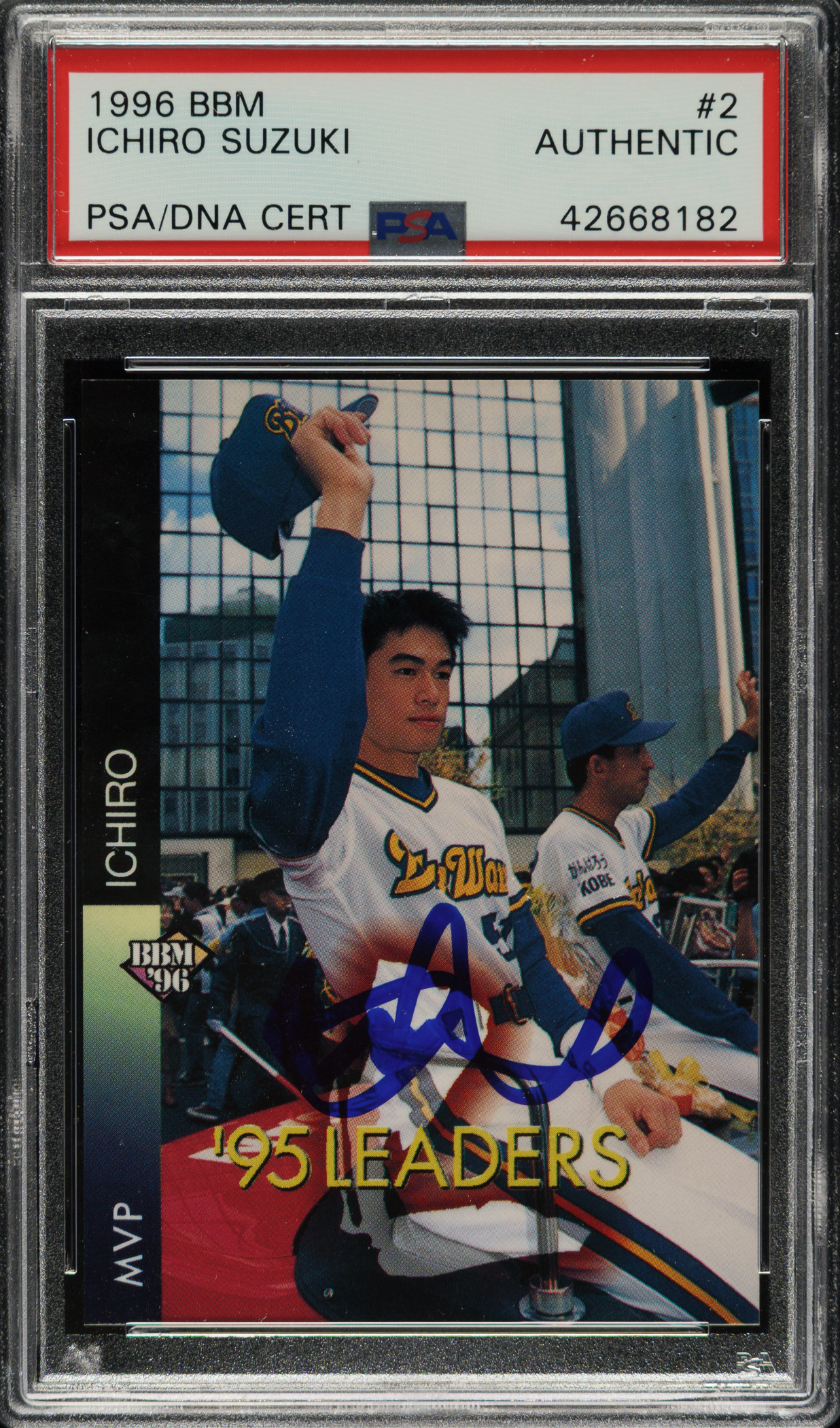 PSA/DNA has encapsulated the card and certified the signature as "Authentic." Seattle Mariners Hall of Famer Ichiro Suzuki (pictured as a member of the Orix Blue Wave).