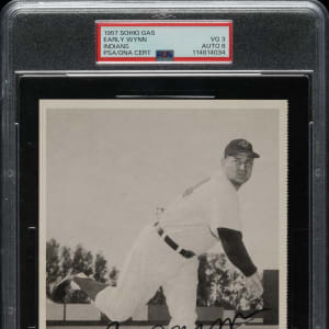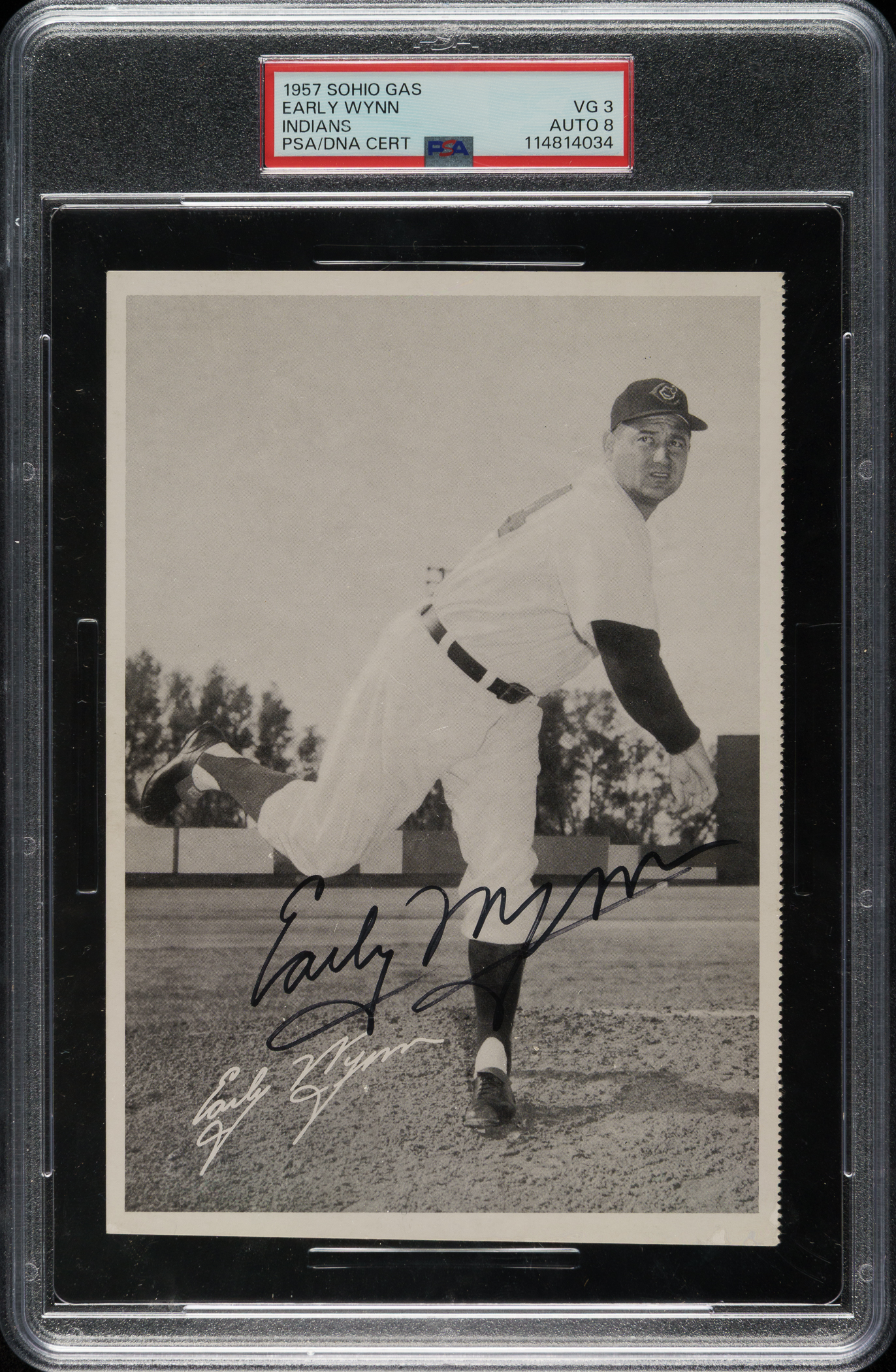 PSA/DNA has encapsulated the card, grading the signature NM-MT 8 and the card VG 3. Cleveland Indians Hall of Famer Early Wynn. This is the only signed example of this card ever encapsulated by PSA/DNA!