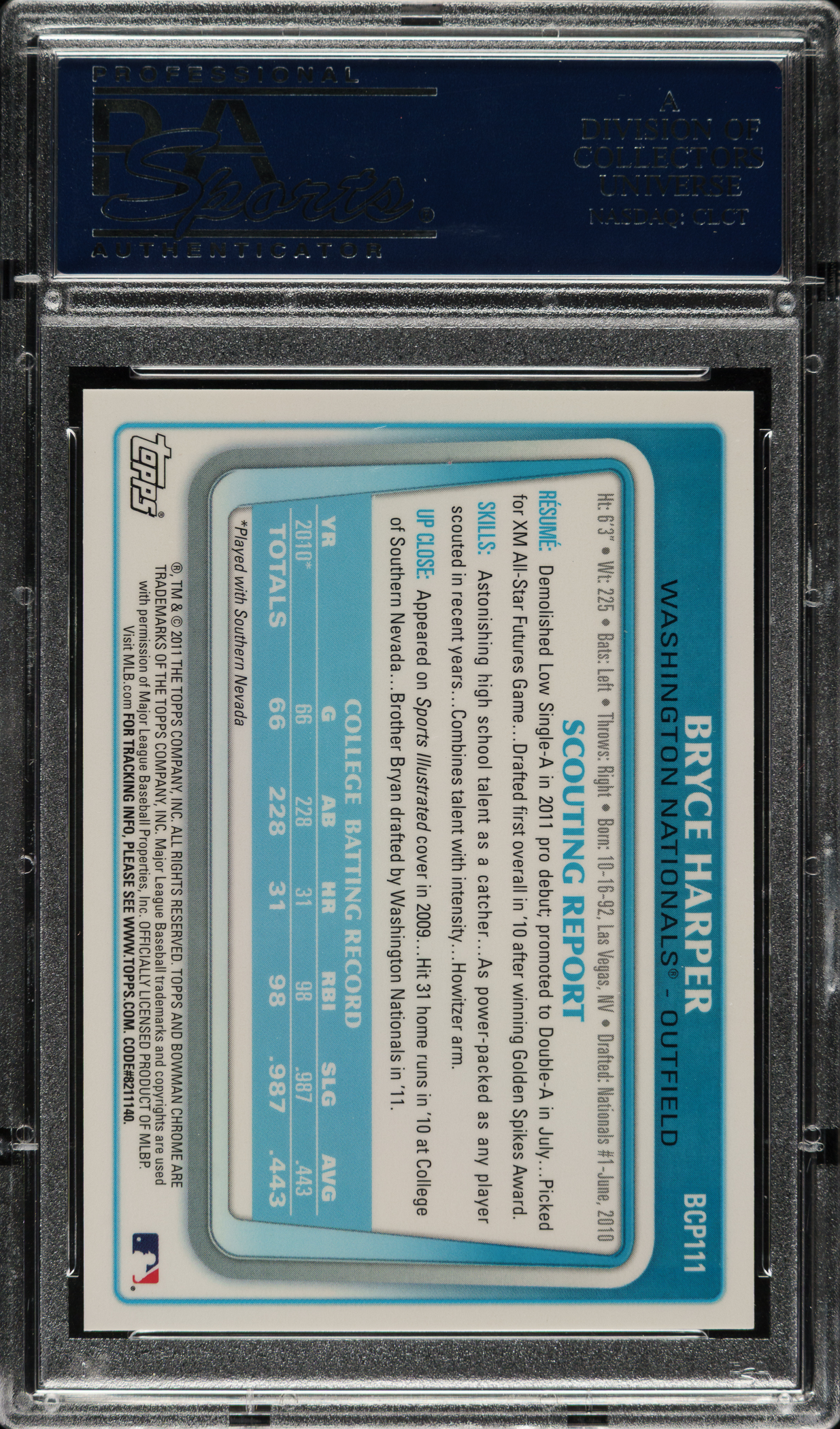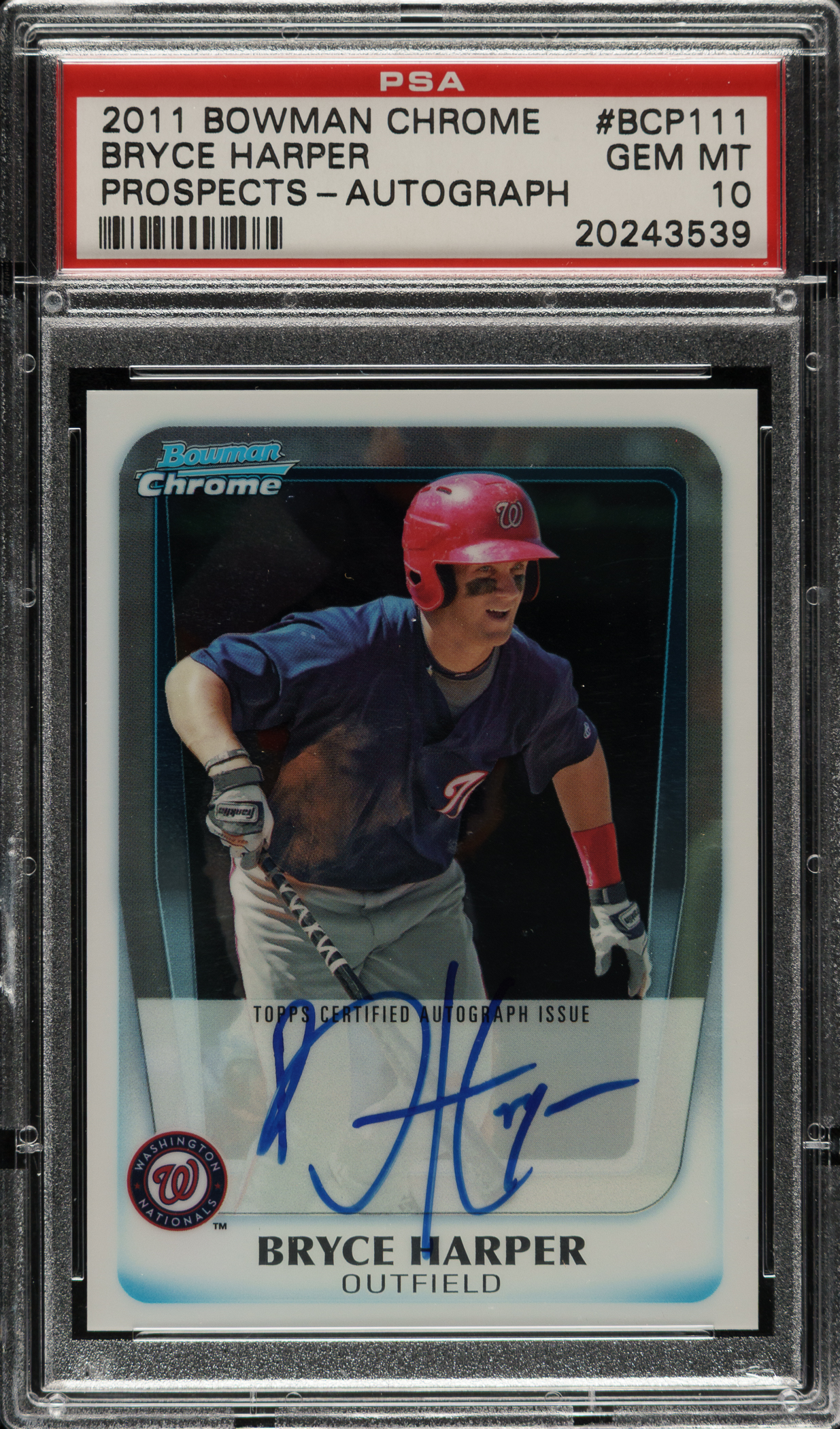 Graded GEM MINT 10 by PSA. First baseman Bryce Harper of the Washington Nationals.