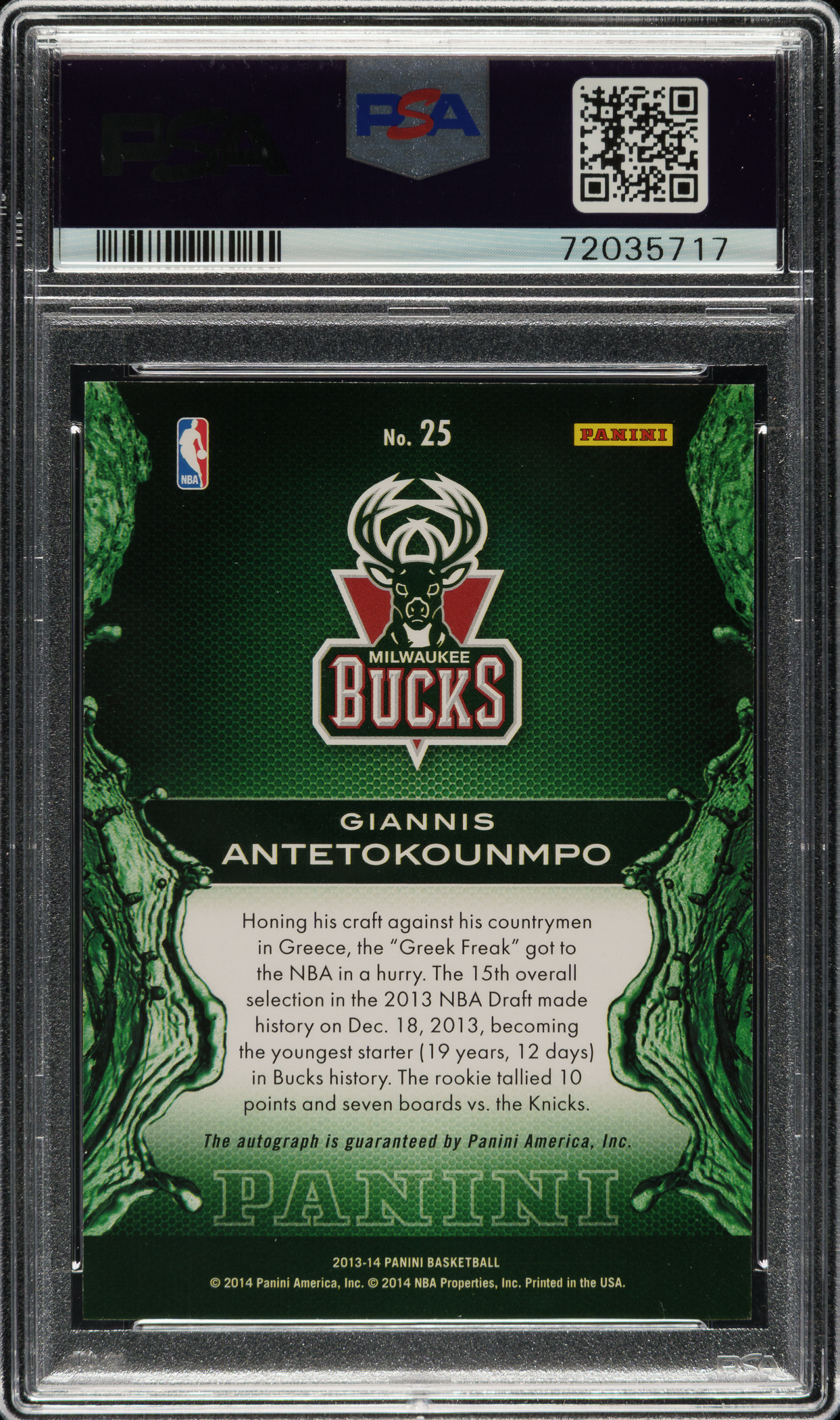PSA/DNA has encapsulated the card, grading the card GEM MINT 10 and the signature GEM MINT 10. Milwaukee Bucks.