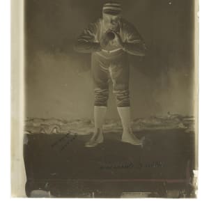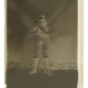 Original N172 glass-plate negative of Tug Wilson of the Omaha Omahogs of the Western Association. Glass-plate negatives used in the production of the Old Judge series are scarce, with nearly all of the approximately 100 known examples originating from a single find many years ago. This is just the sixth example we have ever offered (amazingly, we have two examples in this auction), and we have seen fewer than a dozen others at auction in the past 20 years. All the Old Judge images were taken in a studio setting, with many capturing the players in an "action" pose. Wilson is captured bending over with his hands cupped over a baseball. This is a fascinating and particularly scarce piece. The image on this glass-plate negative is a rare unlisted pose that wasn't used by Goodwin in the final production of the N172 and N173 series. The negative (5 x 7 inches) is in Excellent condition overall