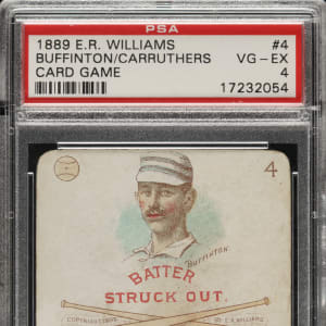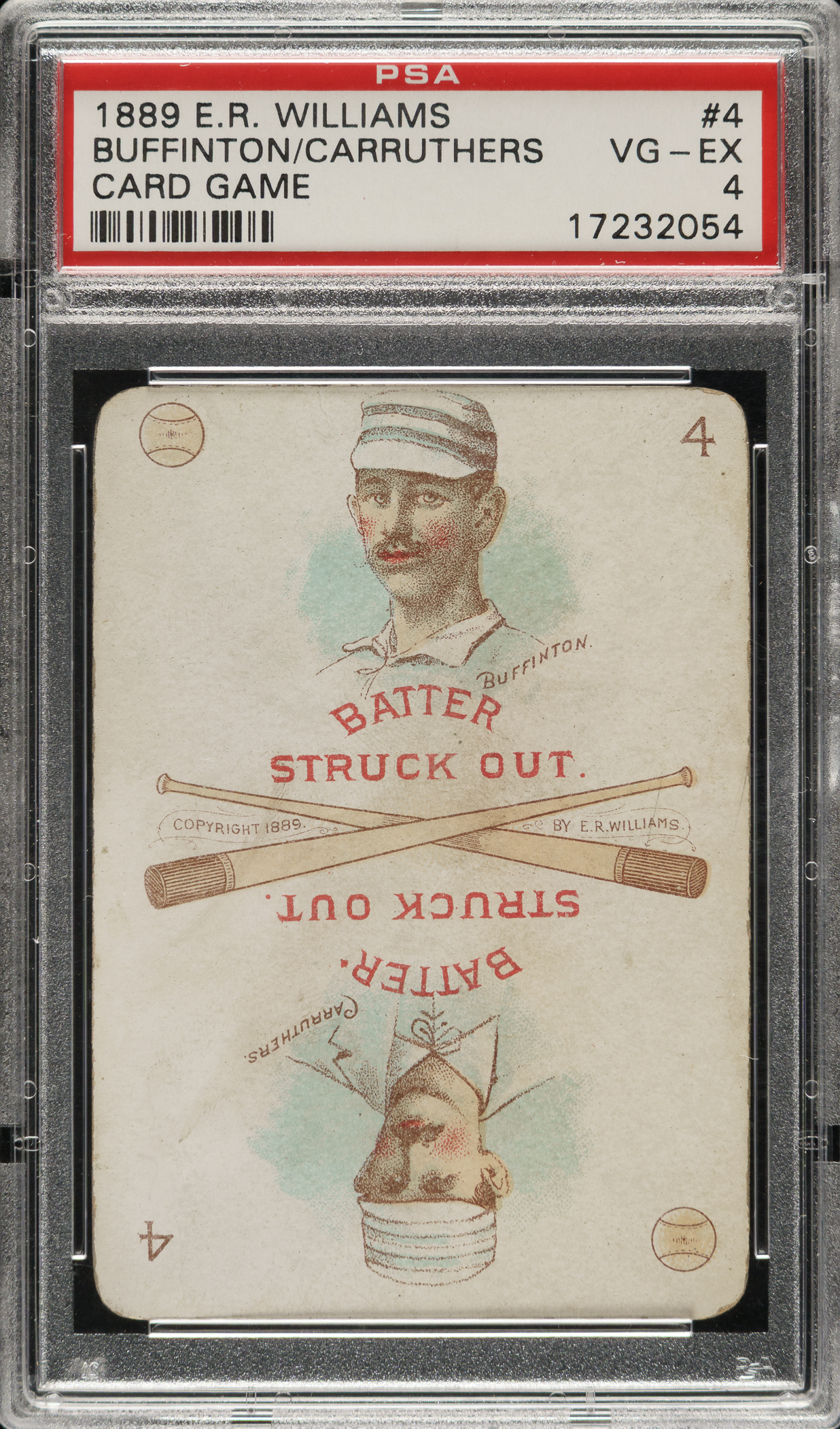Graded VG-EX 4 by PSA. Charles Buffinton (Philadelphia Phillies) and Bob Caruthers (Brooklyn Bridegrooms).