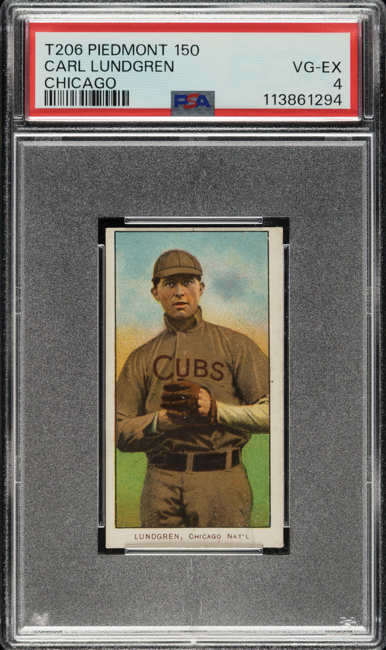 Graded VG-EX 4 by PSA. Pitcher Carl Lundgren of the Chicago Cubs.