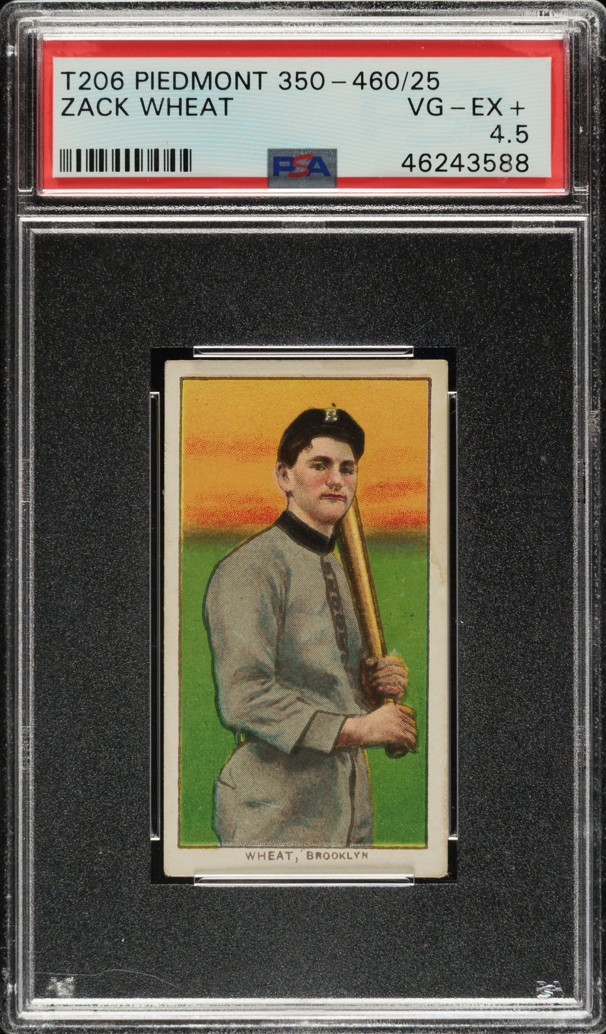 Graded VG-EX+ 4.5 by PSA. Brooklyn Superbas Hall of Famer Zack Wheat.