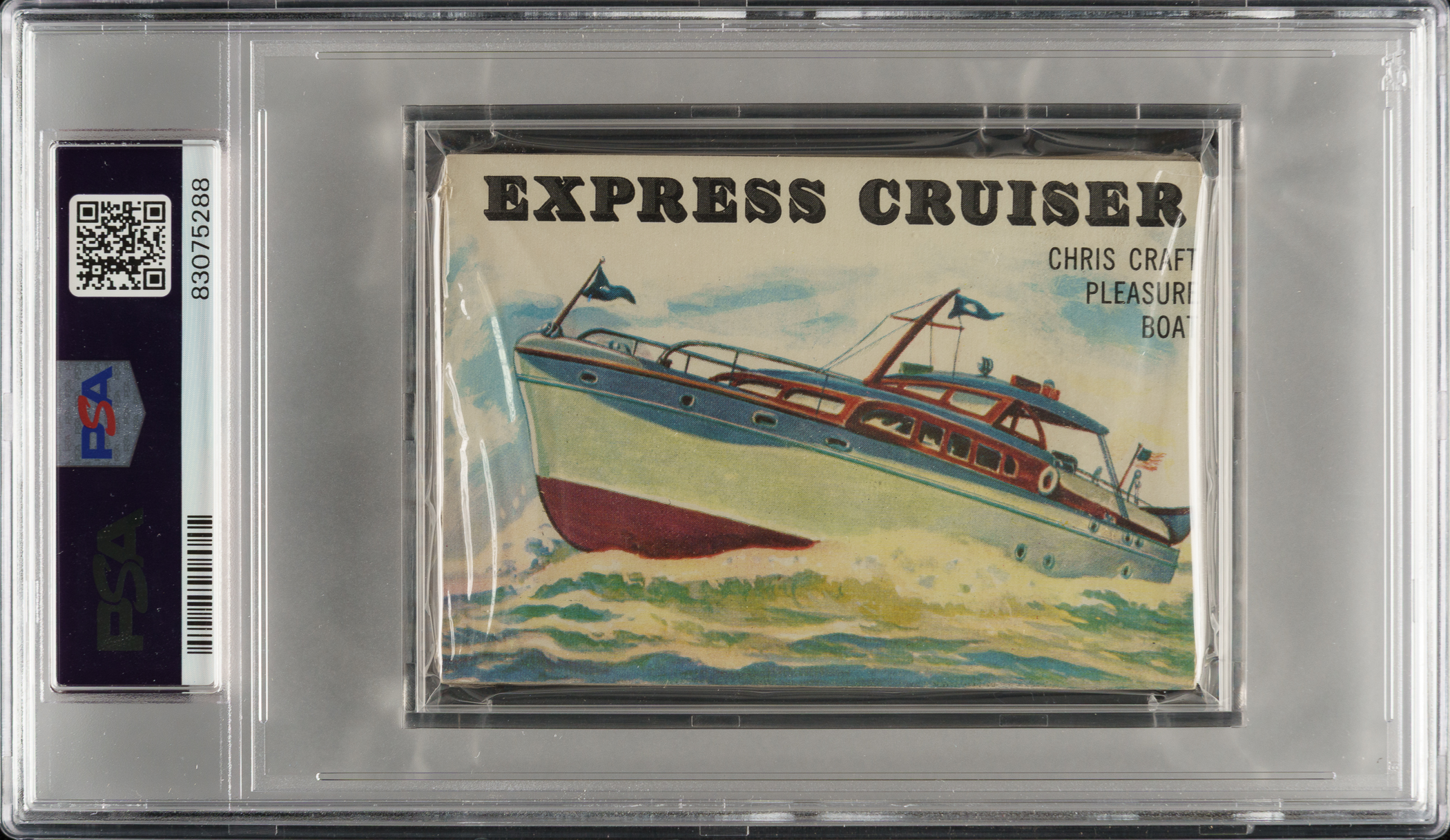 Graded NM 7 by PSA. Outstanding unopened cello pack of 1955 Topps "Rails and Sails" cards. The gorgeous color and amazing detail on each card make this set stand out as one of the most highly regarded and beautiful nonsport card sets ever produced. The 200-card 1955 Topps "Rails and Sails" set features 130 railroad locomotives and cars and 70 types of sailing vessels, with an astounding commitment to detail and historical accuracy. The cello pack is clean with a tight seal along the back.