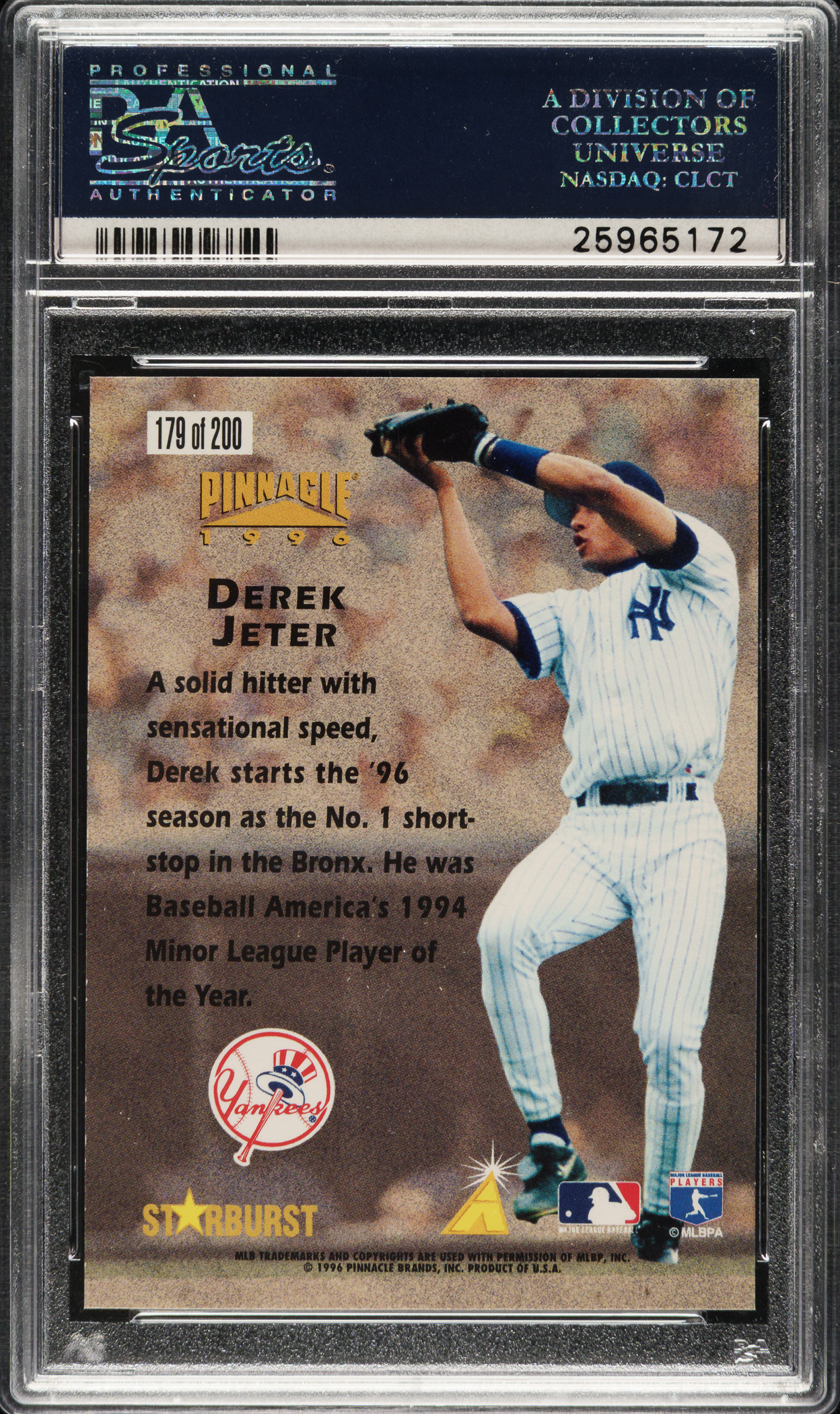 Lot # 1811: 1996 Pinnacle #179 Derek Jeter Rookie Starburst Artist Proof PSA GEM MINT 10