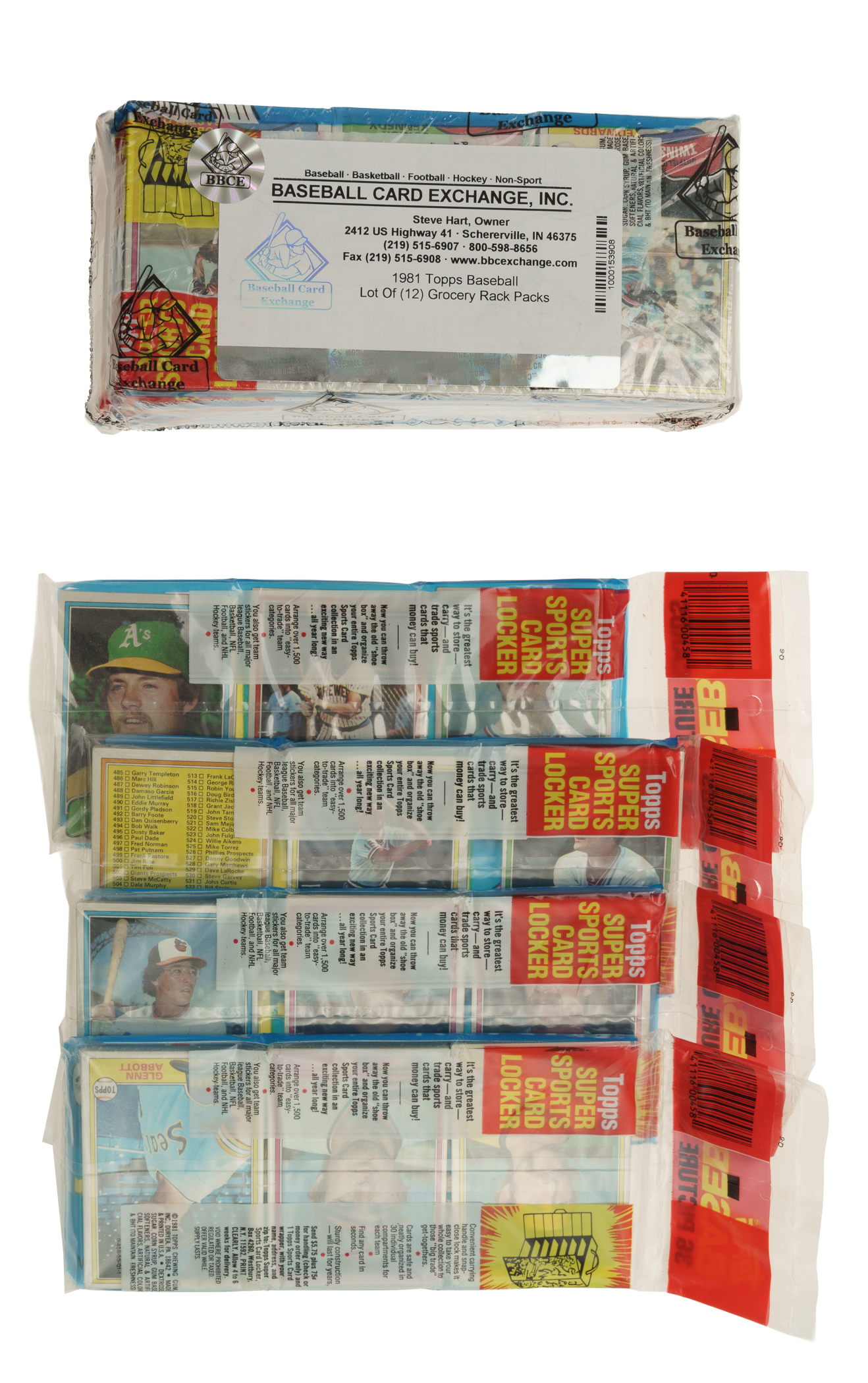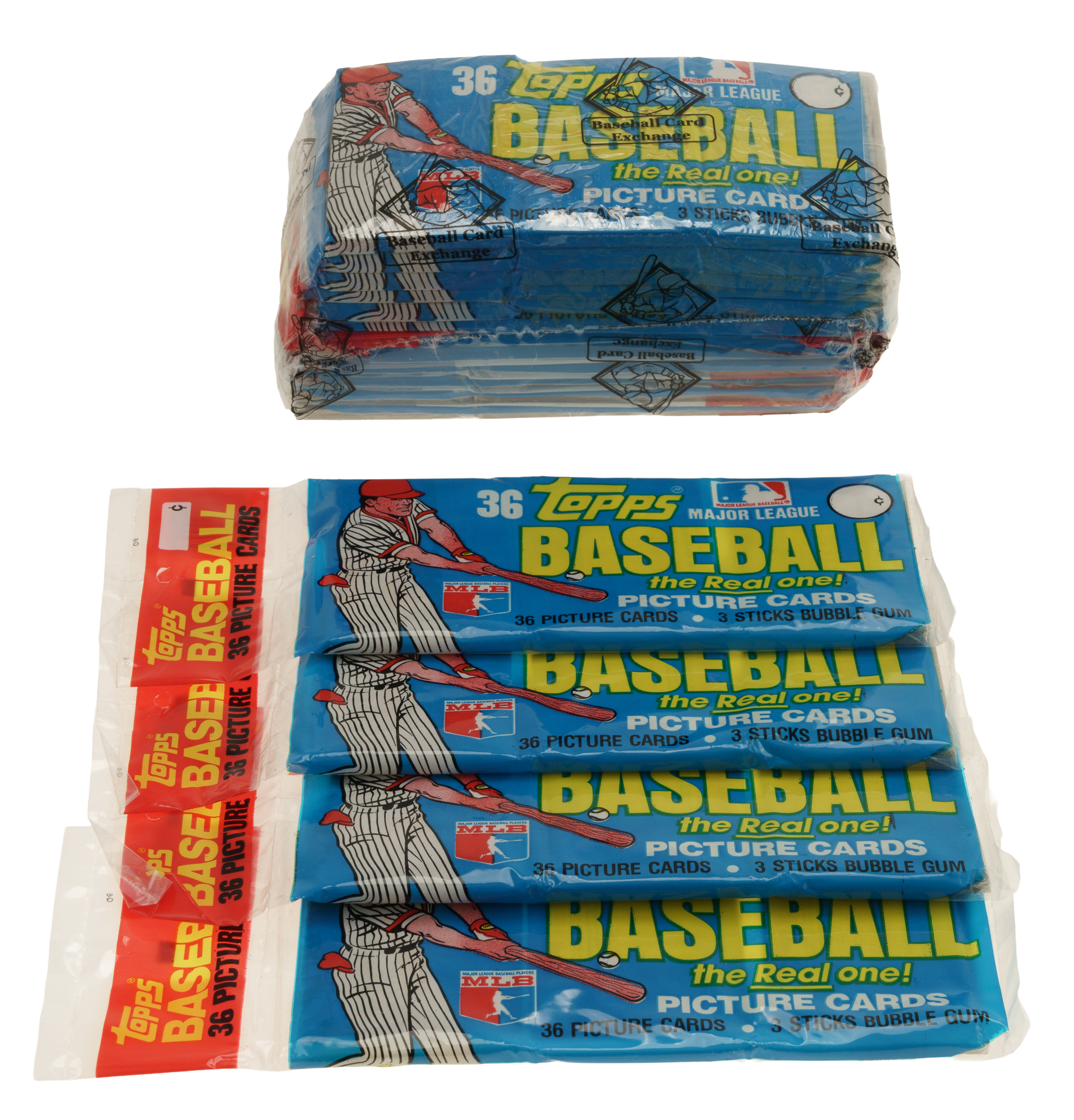 The rack packs come shrink-wrapped by Baseball Card Exchange (owned by Steve Hart, the foremost expert on unopened material) in a 12-count group. Please note that the other group of four packs are not wrapped by Steve Hart but he has personally reviewed these packs, and in his opinion, are original and unopened. The size/weight of this item requires that there will be an additional shipping charge for this lot.