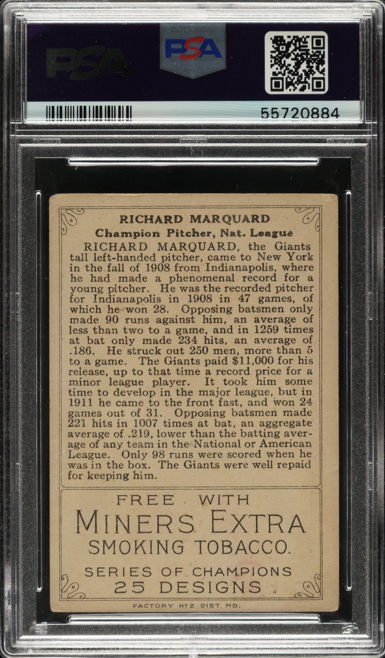 Graded FAIR 1.5 by PSA. New York Giants Hall of Famer Rube Marquard.