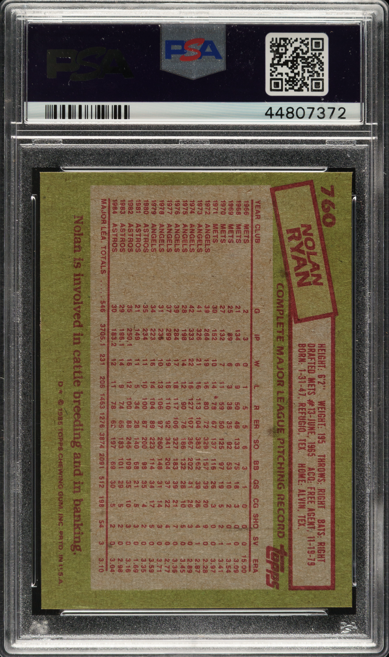 Graded GEM MINT 10 by PSA. Houston Astros Hall of Famer Nolan Ryan.