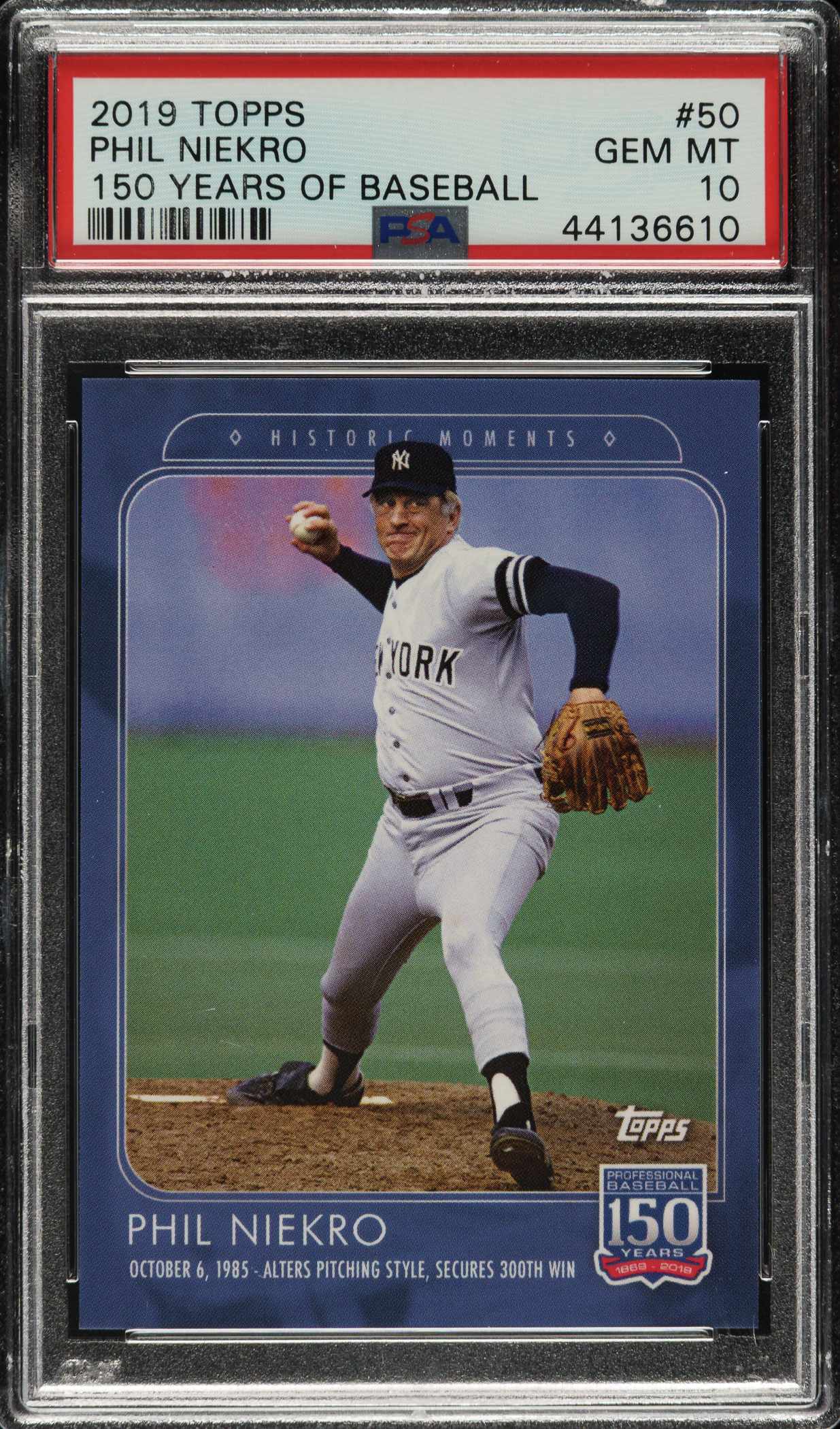 Graded GEM MINT 10 by PSA. New York Yankees Hall of Famer Phil Niekro.