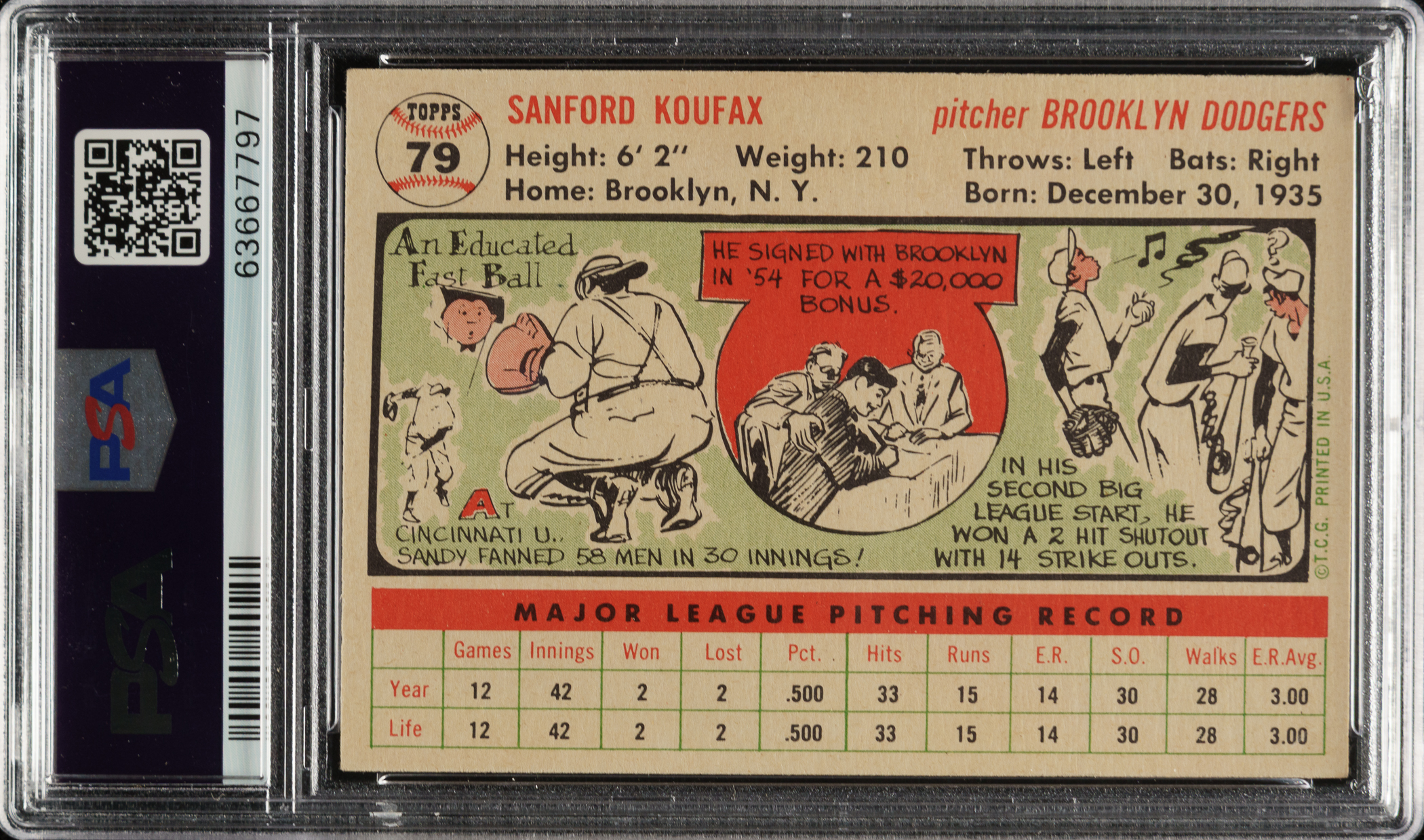 Graded NM 7 by PSA. Brooklyn Dodgers Hall of Famer Sandy Koufax.