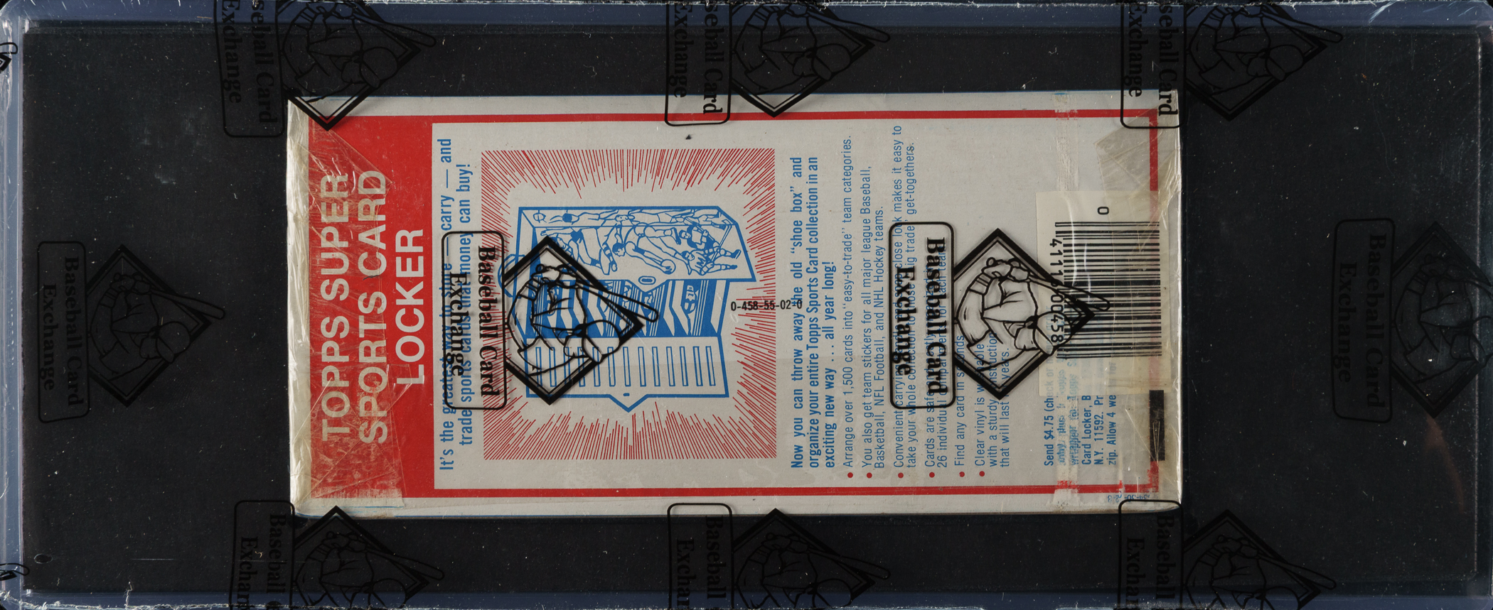 Original unopened triple wax-pack grocery tray from the 1980 Topps baseball series. The key card to the 1980 Topps set is the rookie card of Rickey Henderson, along with cards of all the other stars and Hall of Famers of the day, including Nolan Ryan, George Brett, and Mike Schmidt. This tray comes shrink-wrapped by Baseball Card Exchange (owned by Steve Hart, the foremost expert on unopened material). A price sticker is affixed on the front.