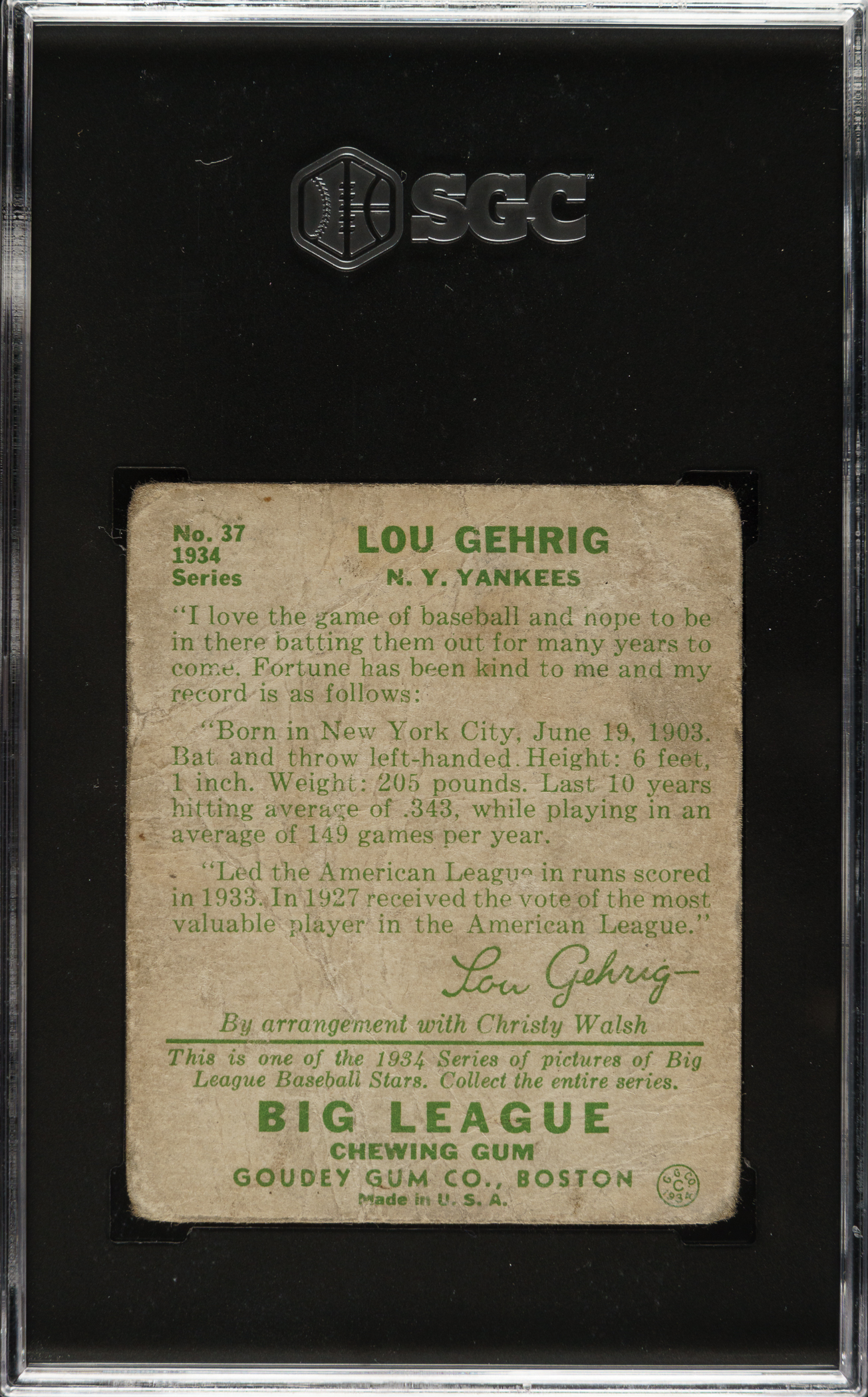 Graded POOR 1 by SGC. New York Yankees Hall of Famer Lou Gehrig.