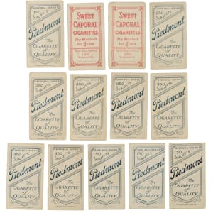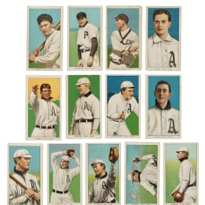 Presented is a collection of thirteen 1909-1911 T206 White Border Philadelphia Athletics baseball cards. Condition ranges from Gd to Vg-Ex (averaging Vg), including one lesser. This collection consists of the following: J. Barry, Covaleski, H. Davis/H. on front, Doolan/batting, Dygert, Hartsel, Krause/pitching, Livingstone, Magee/with bat, Murphy/batting, Murphy/throwing (Vg, horizontal), Oldring/fielding, and Thomas. Total: 13 cards.